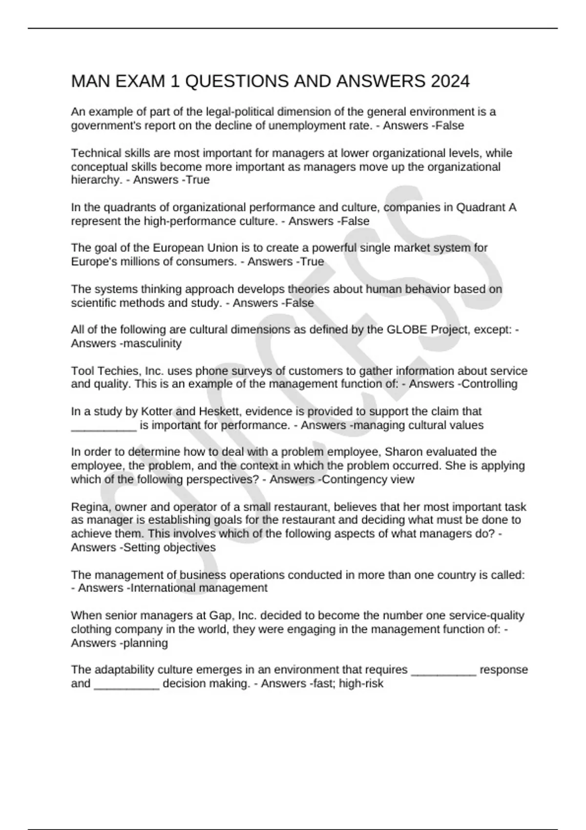 MAN EXAM 1 QUESTIONS AND ANSWERS 2024