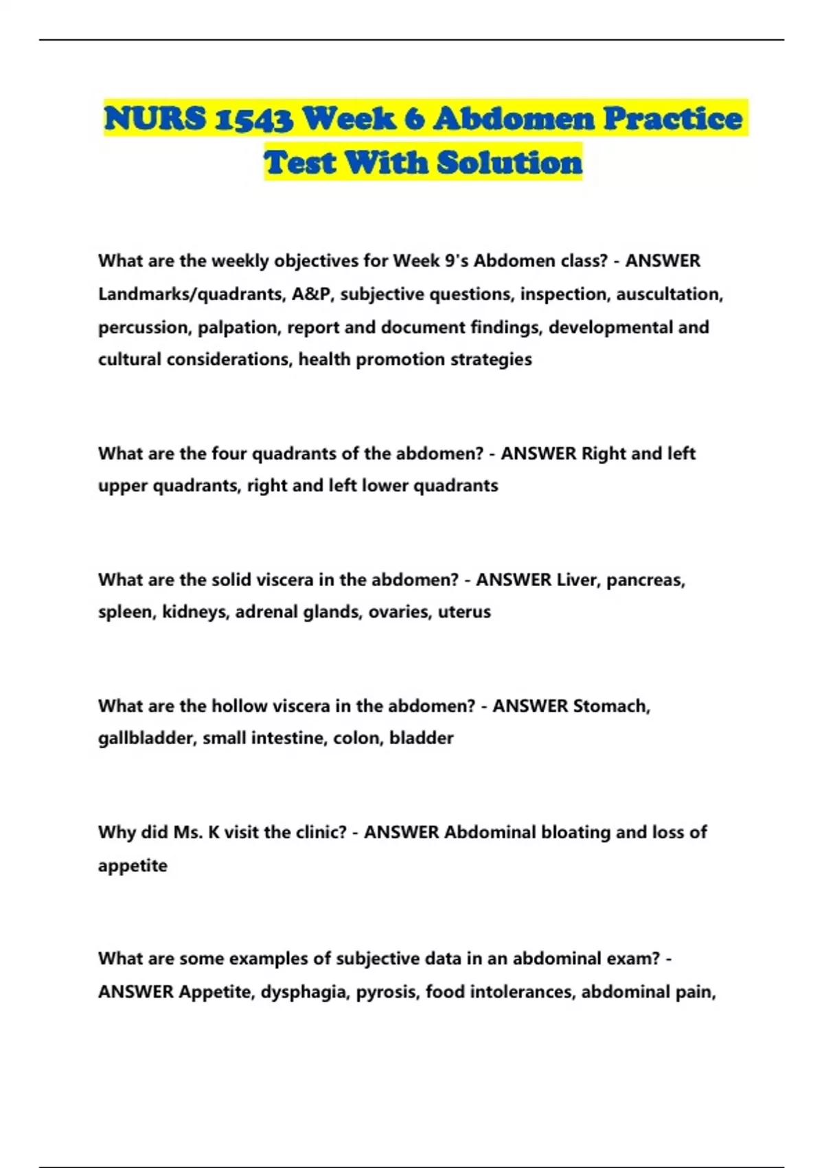 NURS 1543 Week 6 Abdomen Practice Test With Solution...