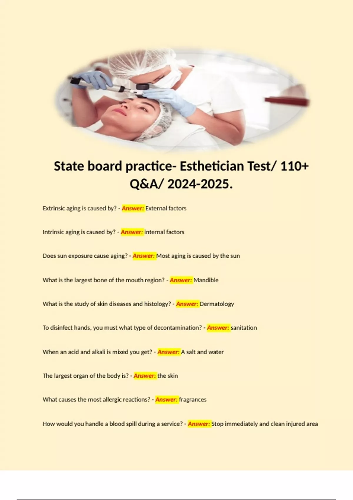 State board practice- Esthetician Test/ 110+ Q&A/ .