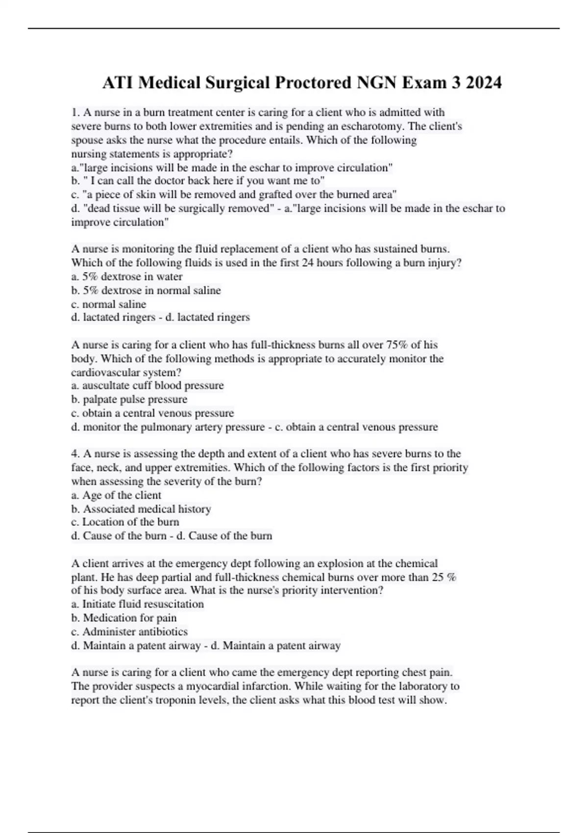1. A nurse in a burn treatment center is caring for a client who is admitted with