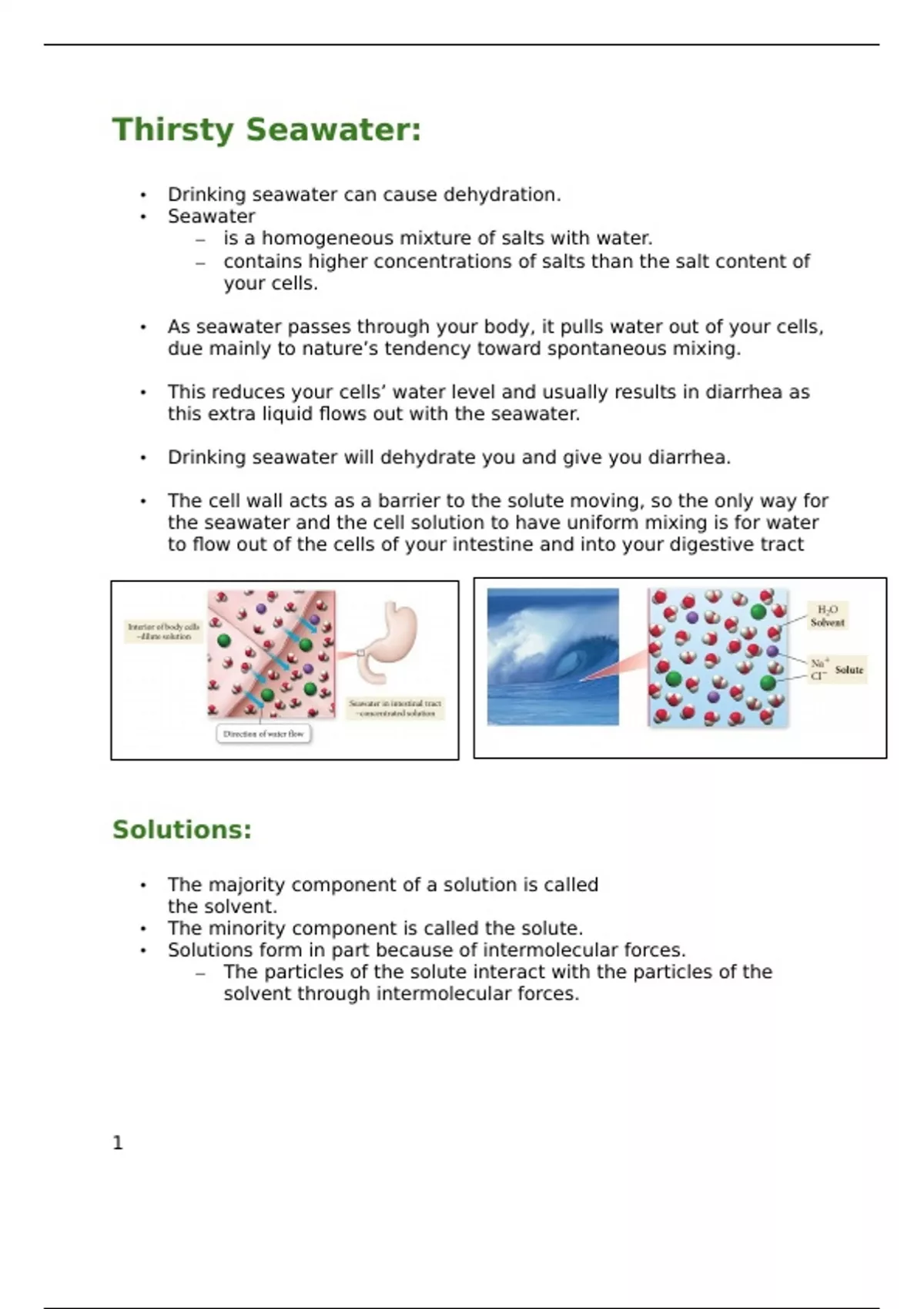 spontaneously mix to result in a uniform distribution of solute throughout the