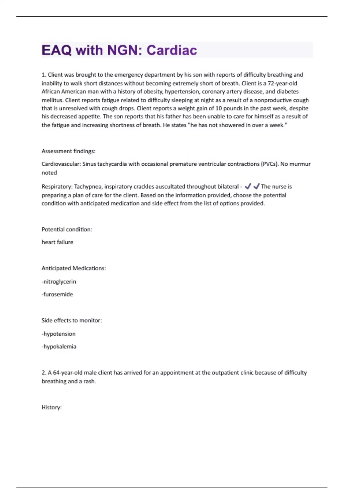 1. Client was brought to the emergency department by his son with reports of difficulty breathing and