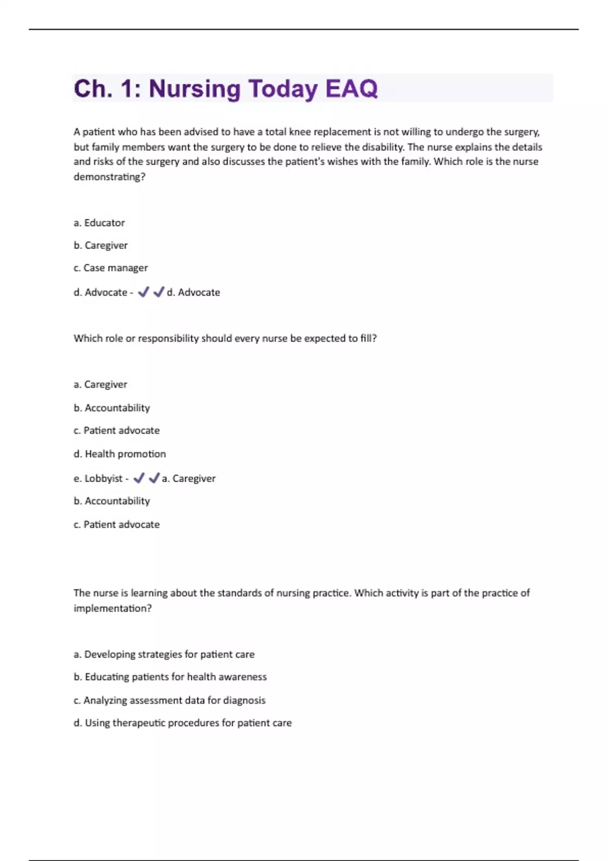 a. Nursing practice involves evaluation of the nurse's own practice and the practice of others.