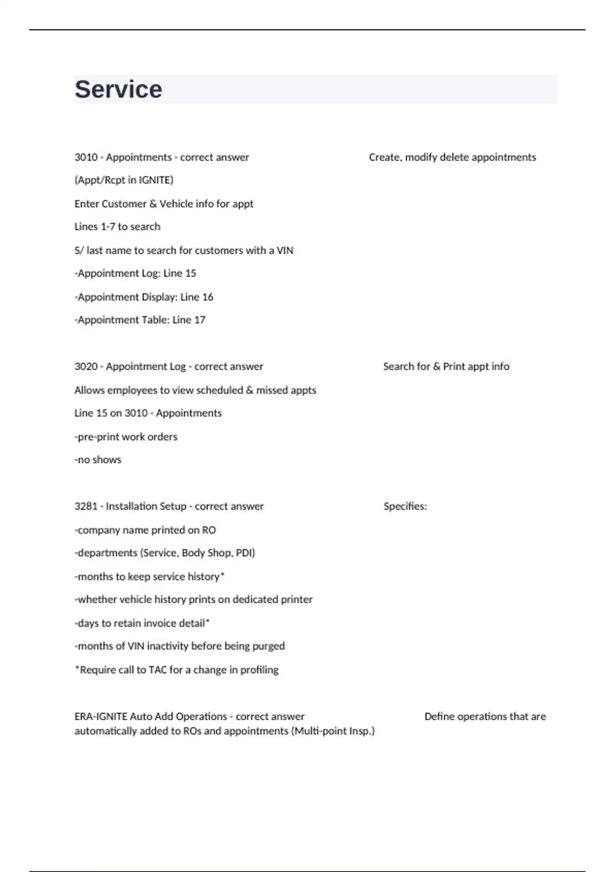 3080 - Manufacturer Op Codes - correct answer Link service op codes to