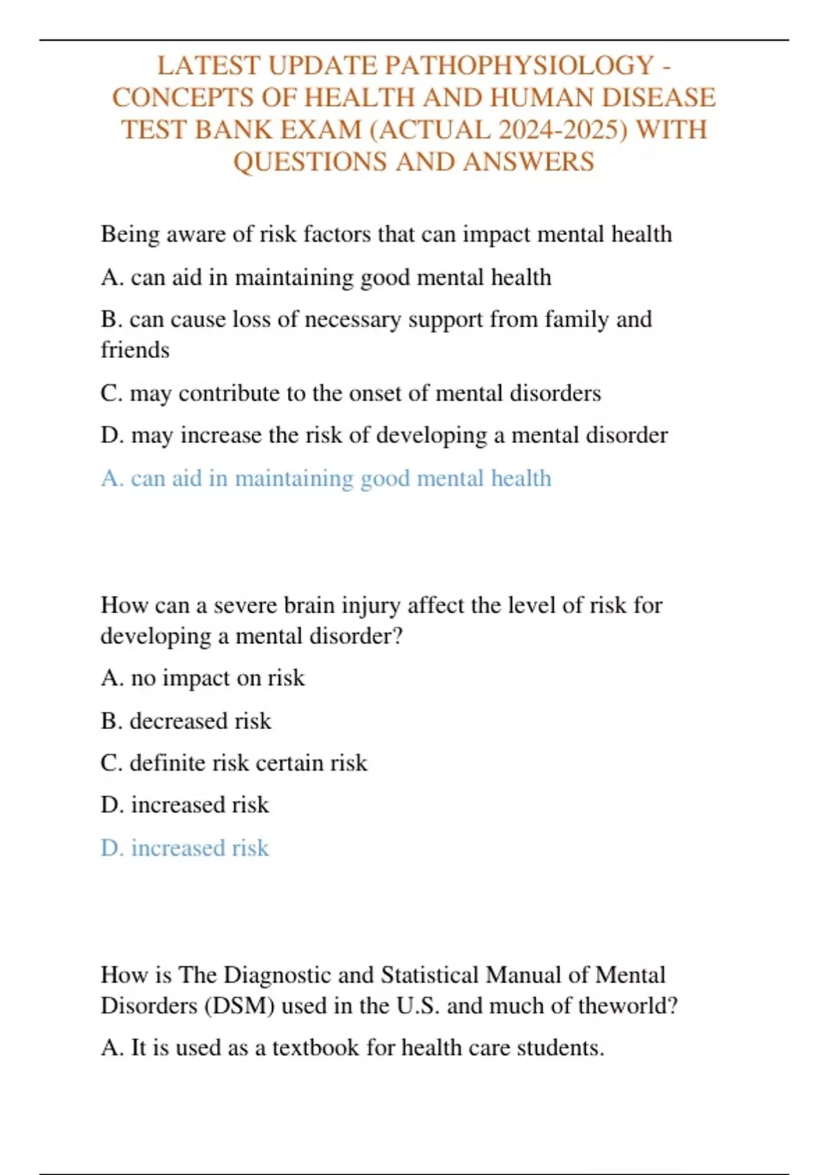 LATEST UPDATE PATHOPHYSIOLOGY - CONCEPTS OF HEALTH AND HUMAN DISEASE TEST BANK EXAM (ACTUAL ) WITH QUESTIONS AND ANSWERS