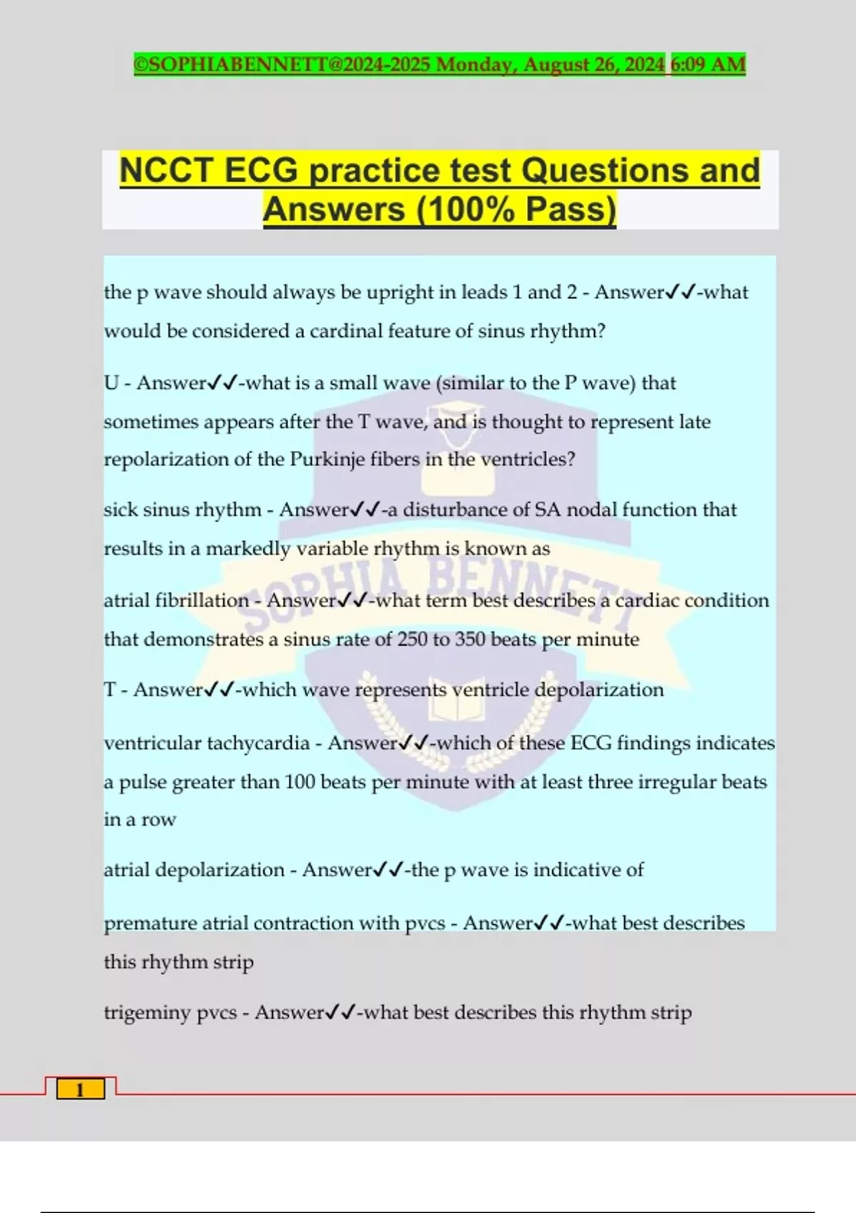 NCCT ECG practice test Questions and