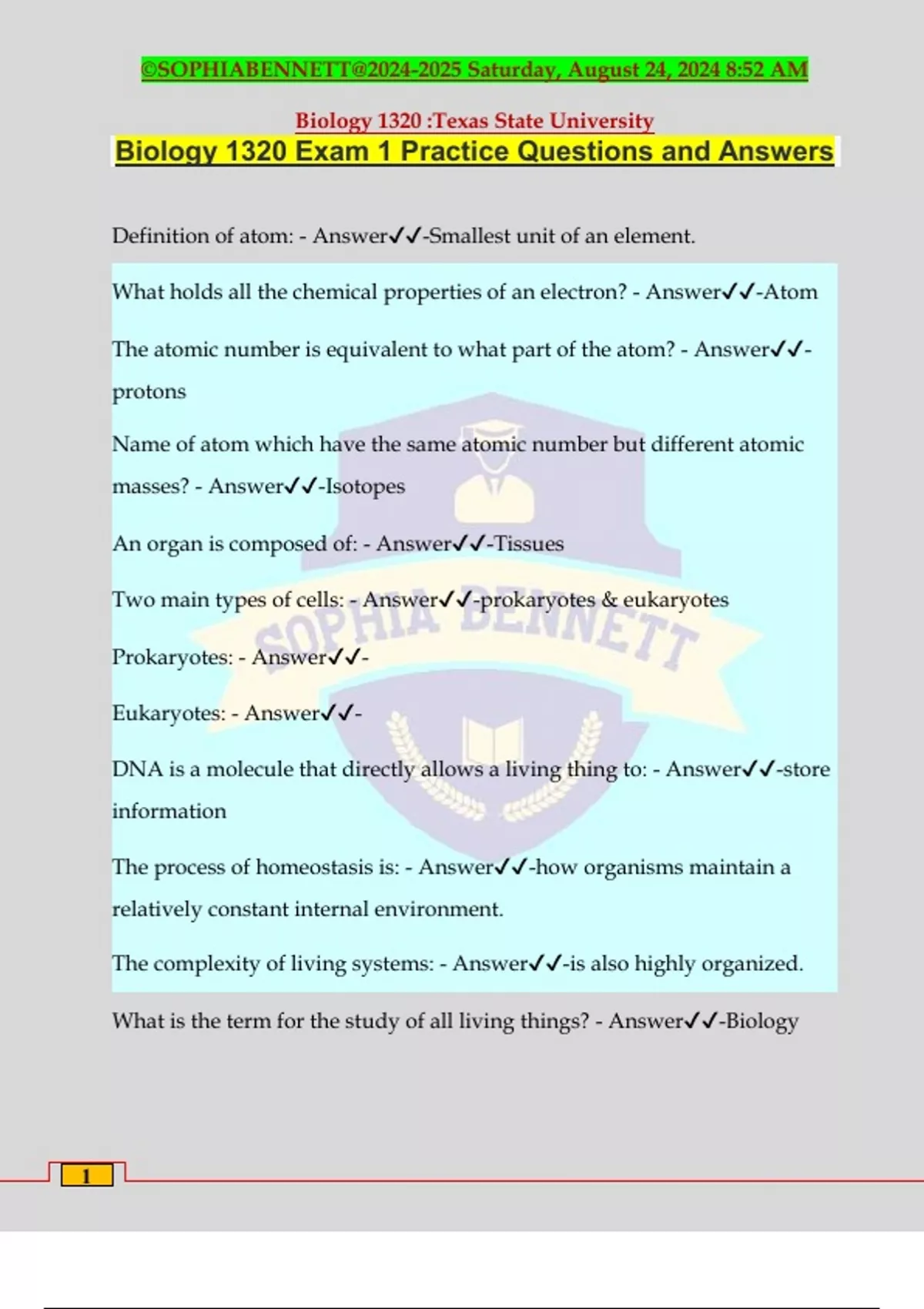 Exam Questions and Answers Section : Study Like a Pro, Study Smart, Study with Sophia.