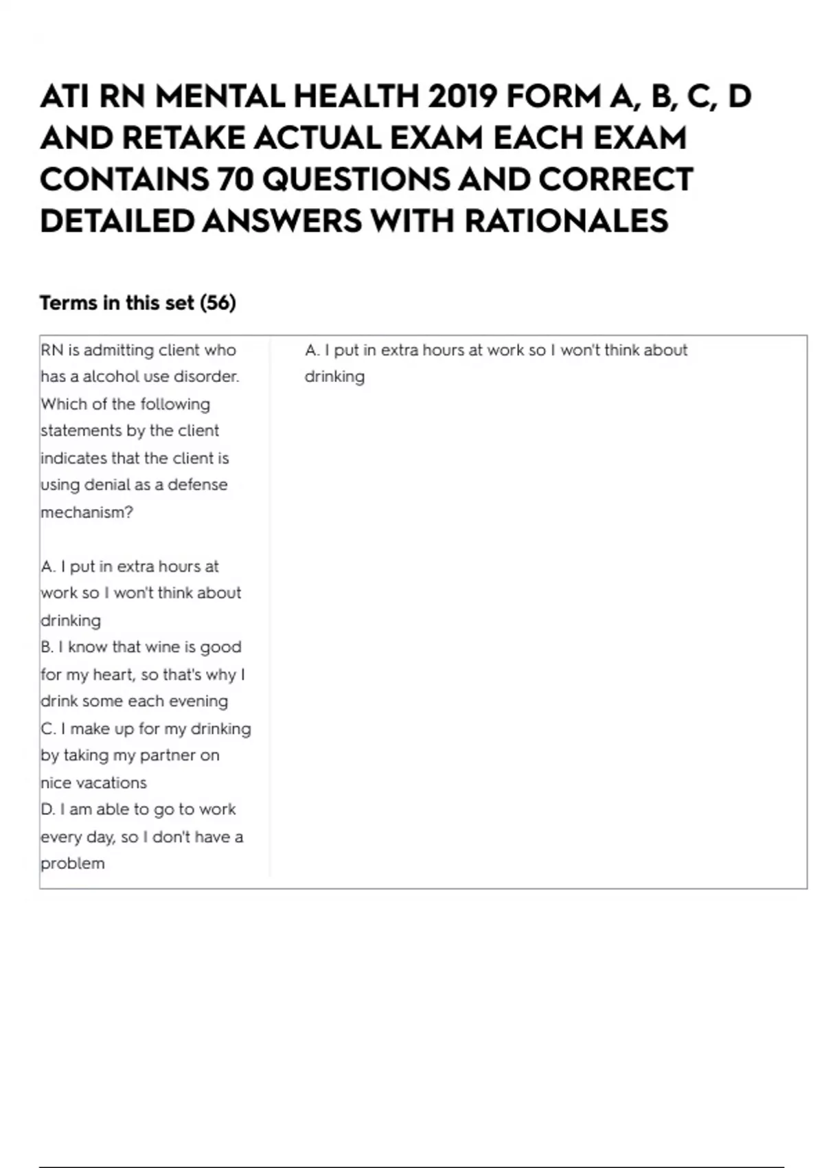 RN is admitting client who A. I put in extra hours at work so I won't think about