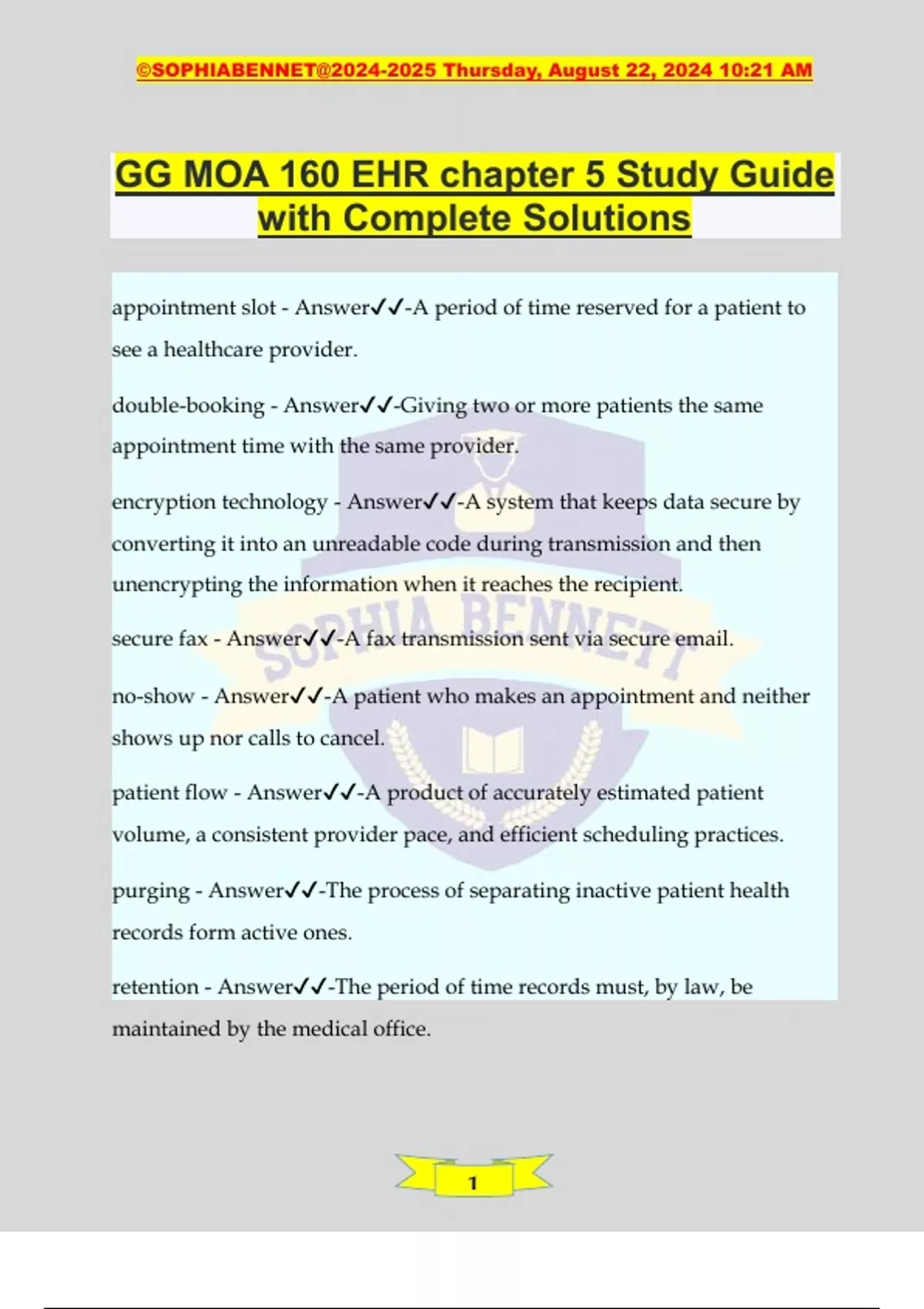 GG MOA 160 EHR chapter 5 Study Guide