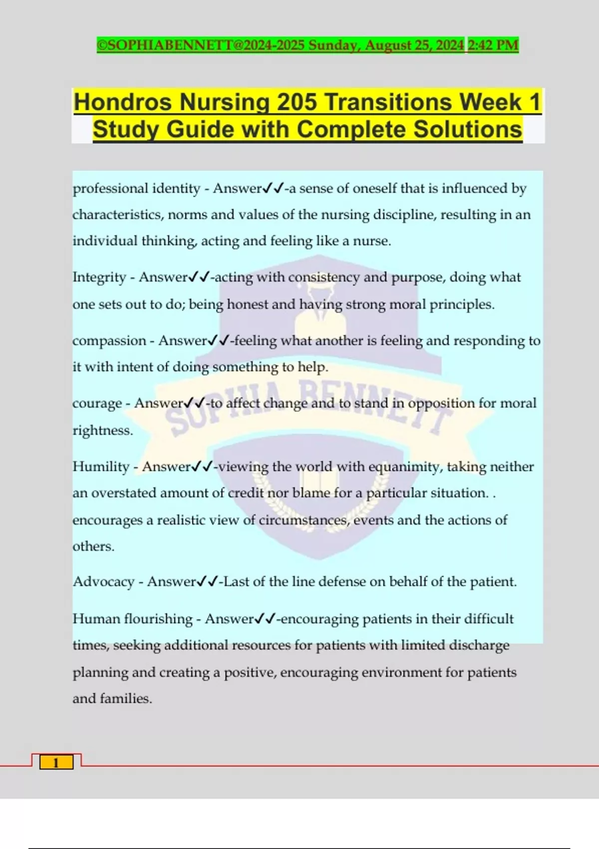 Hondros Nursing 205 Transitions Week 1