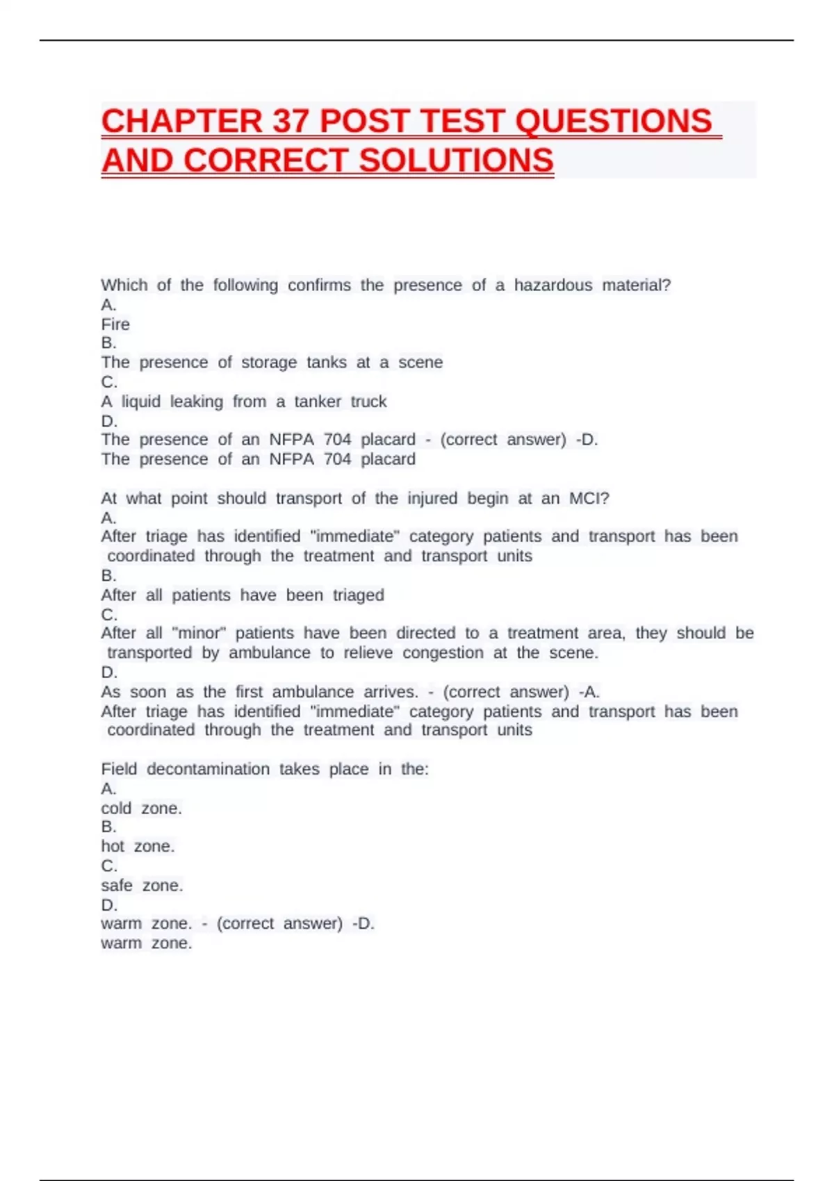 As bsoon bas bthe bfirst bambulance barrives. b- b(correct banswer) b-A.