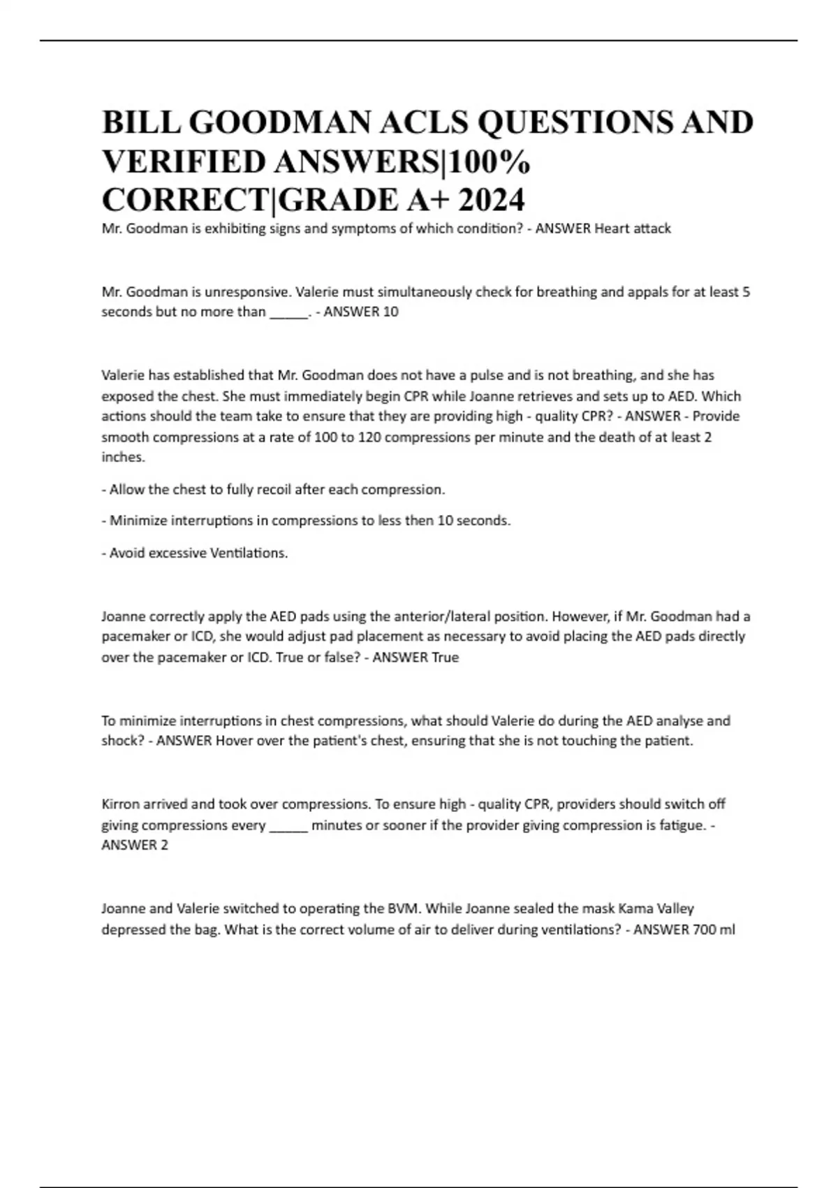 Mr. Goodman is unresponsive. Valerie must simultaneously check for breathing and appals for at least 5