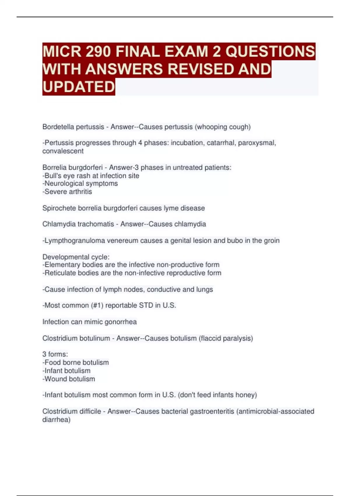 Bordetella pertussis - Answer--Causes pertussis (whooping cough)