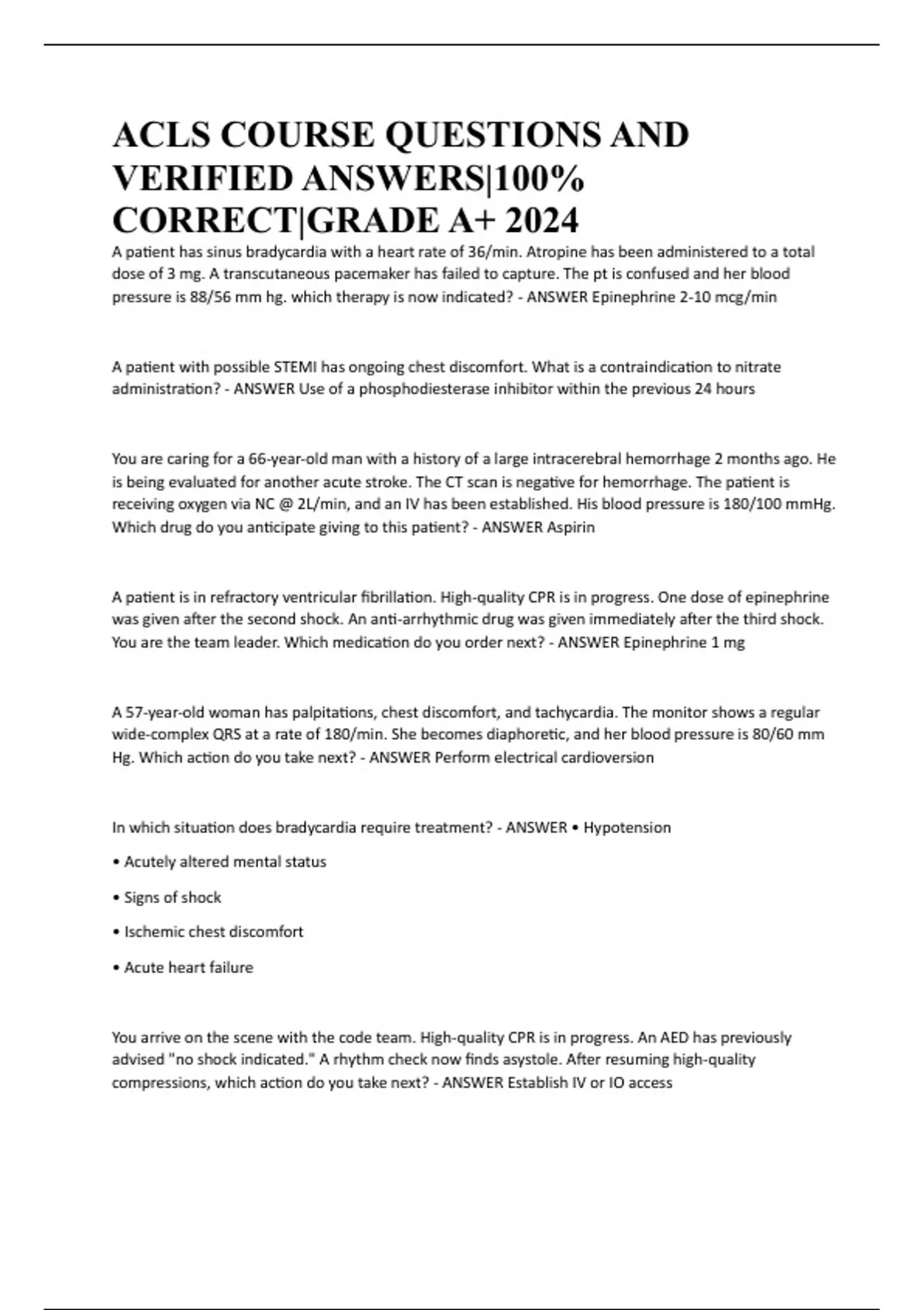 ACLS QUESTIONS AND VERIFIED ANSWERS|100% CORRECT|GRADE A+ 2024