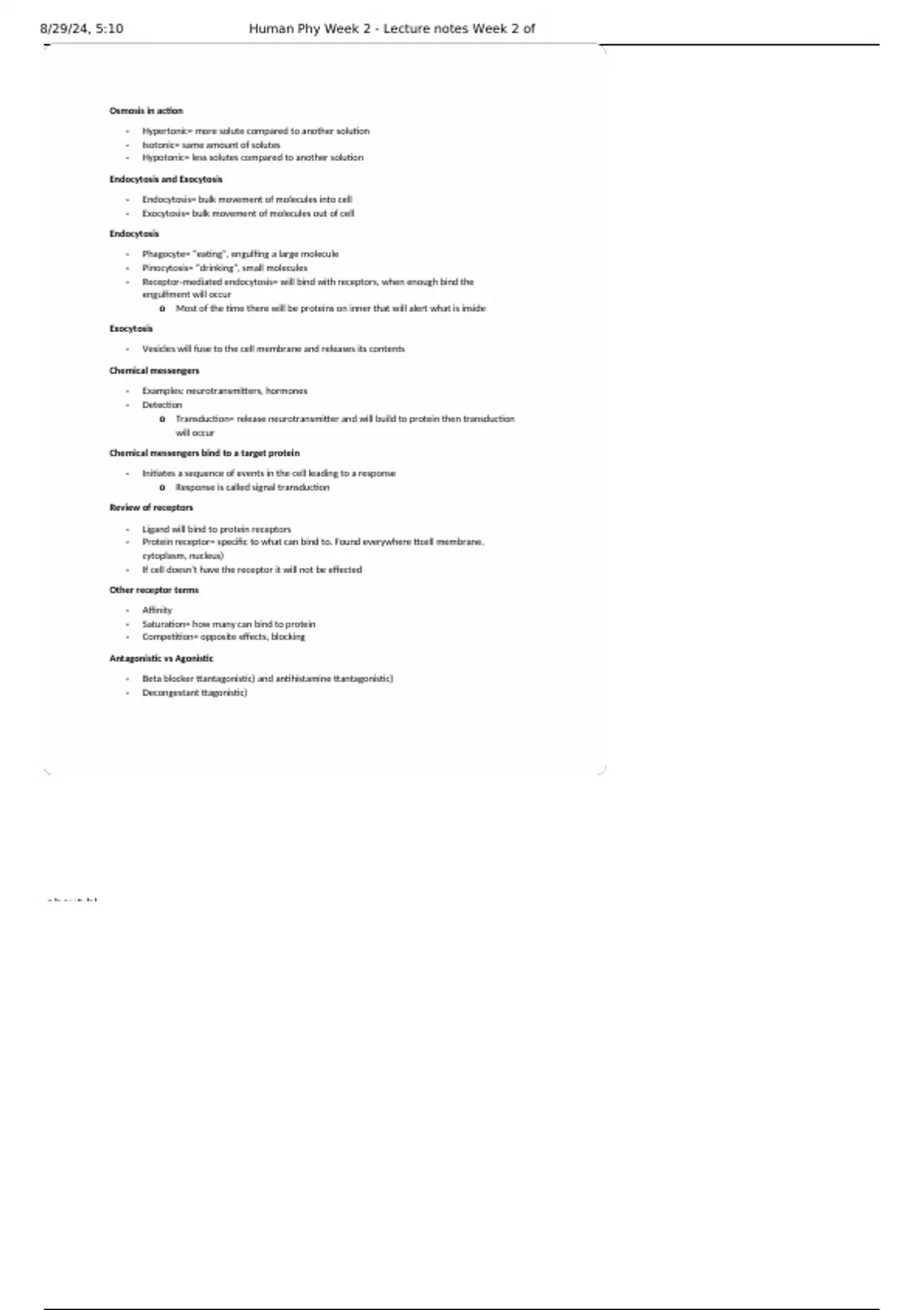 , 8/29/24, 5:10 Human Phy Week 2 - Lecture notes Week 2 of