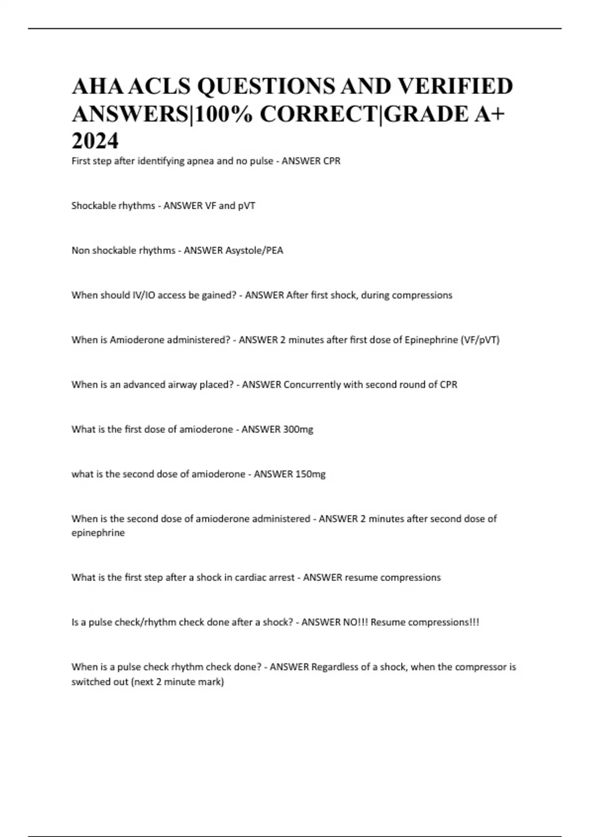 AHA ACLS QUESTIONS AND VERIFIED ANSWERS|100% CORRECT|GRADE A+ 2024