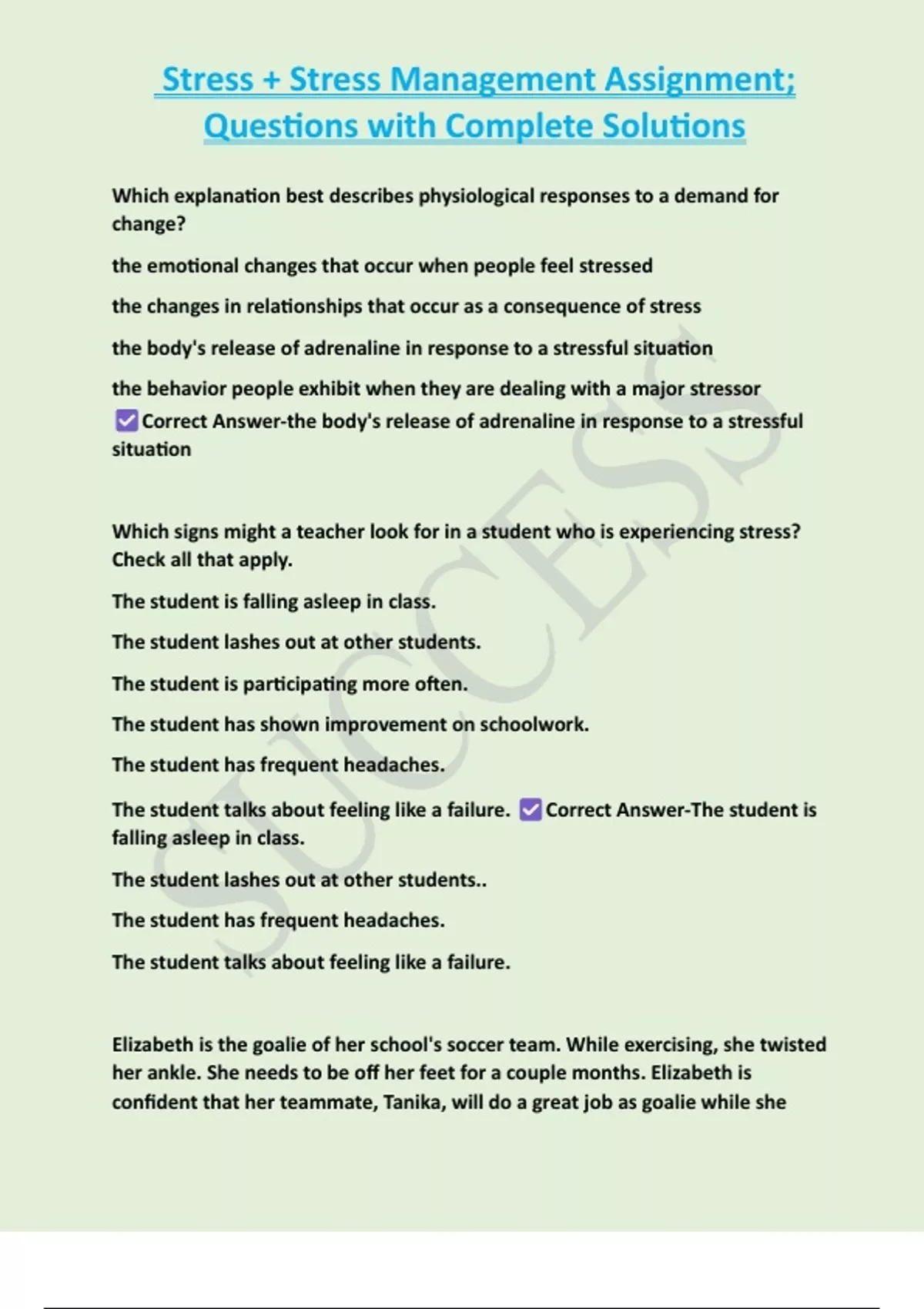 Elizabeth is the goalie of her school's soccer team. While exercising, she twisted