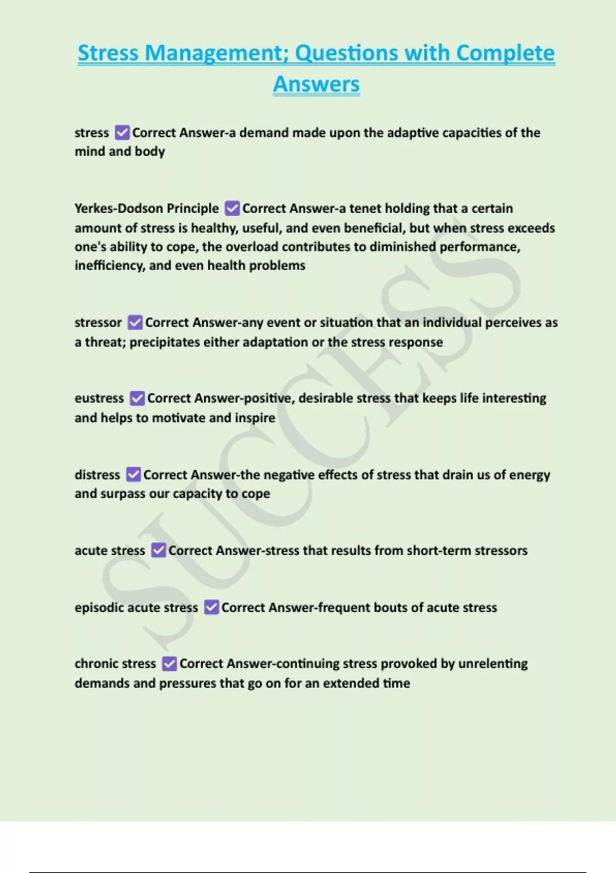 eustress Correct Answer-positive, desirable stress that keeps life interesting