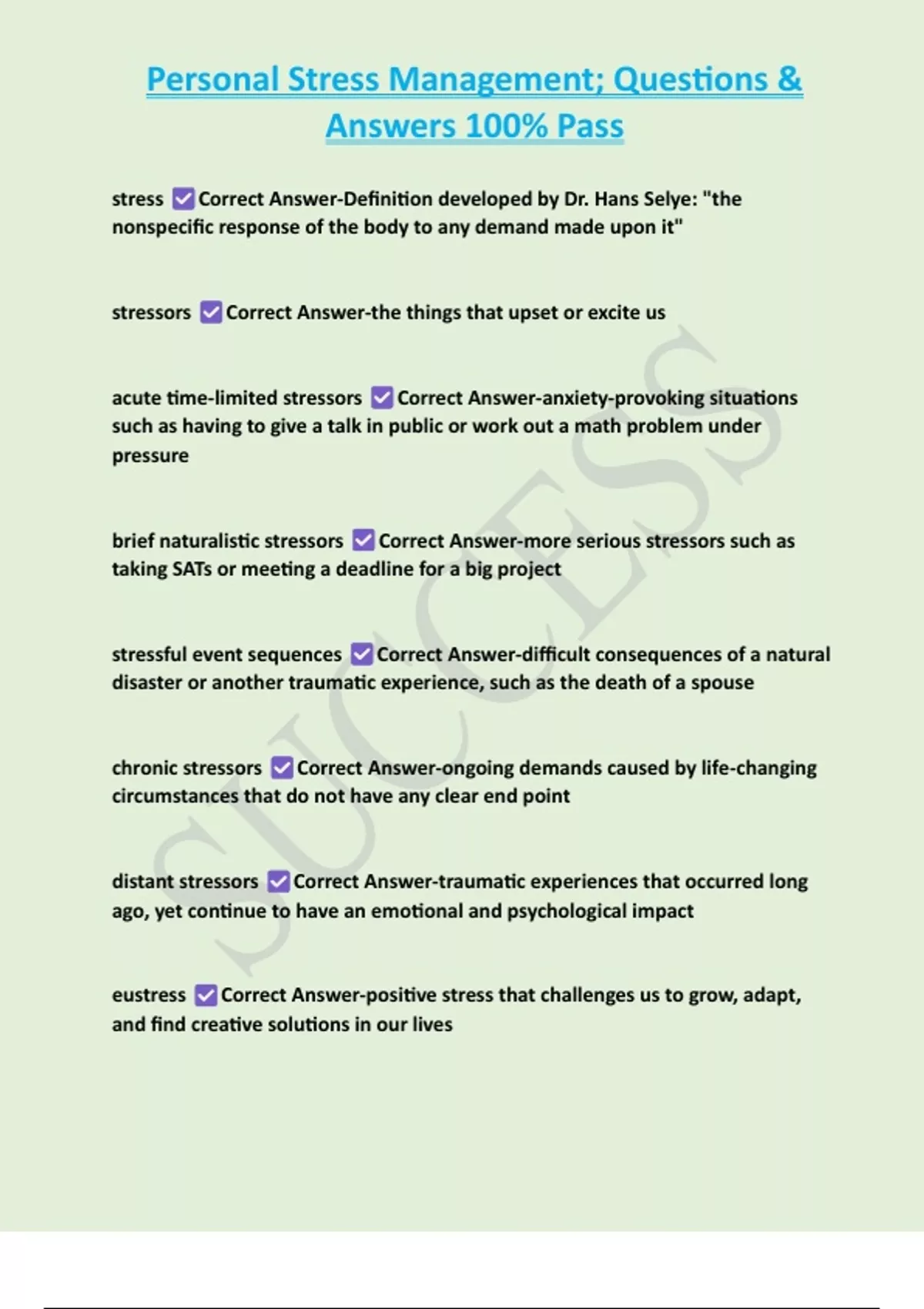 stress Correct Answer-Definition developed by Dr. Hans Selye: "the