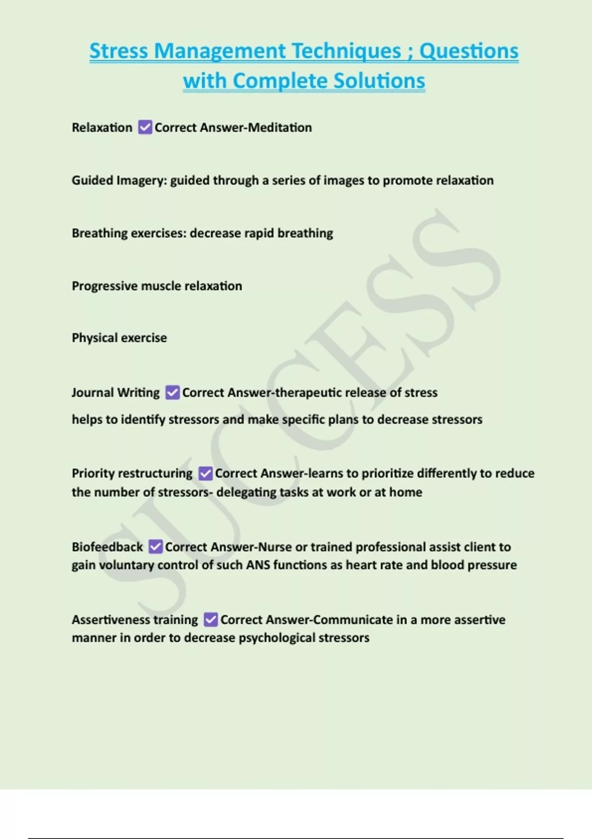 Relaxation Correct Answer-Meditation