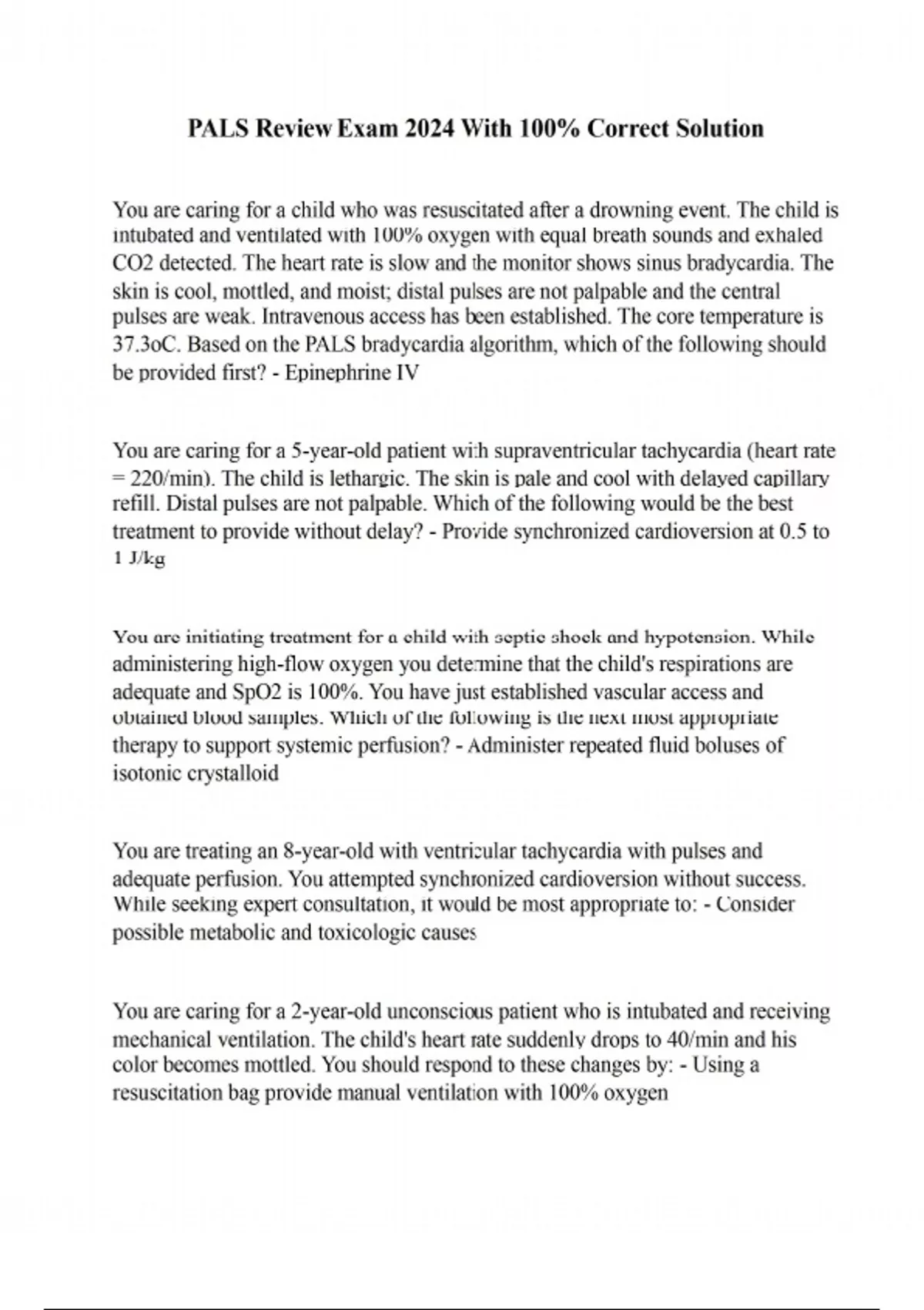 PALS Review Exam 2024 With 100% Correct Solution