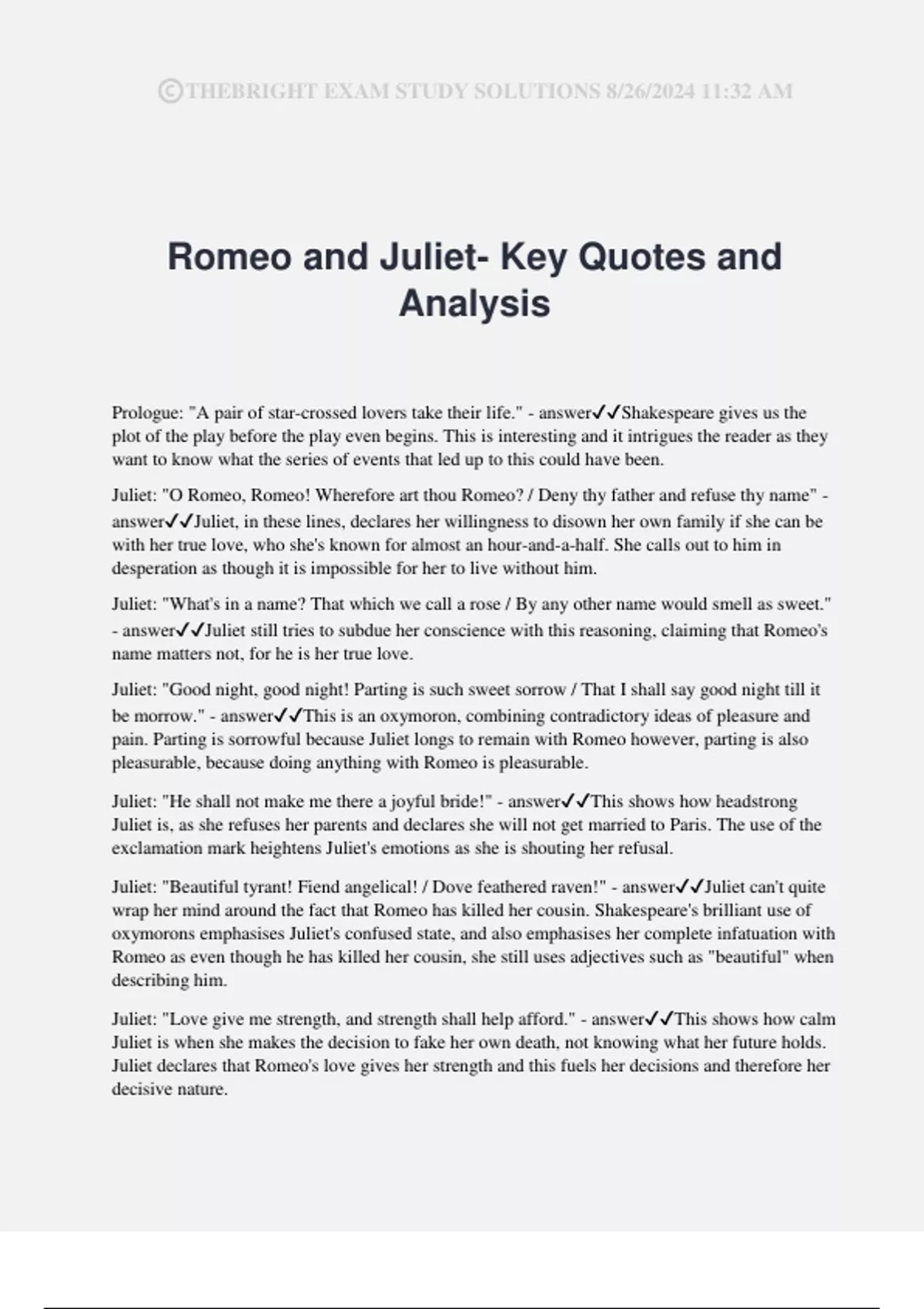 Romeo and Juliet- Key Quotes and