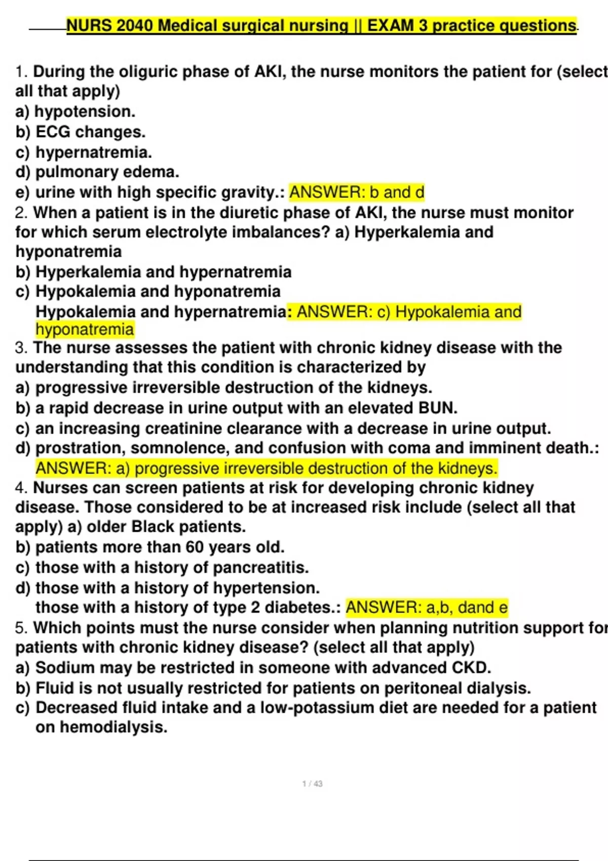 , NURS 2040 Medical surgical nursing || EXAM 3 practice questions