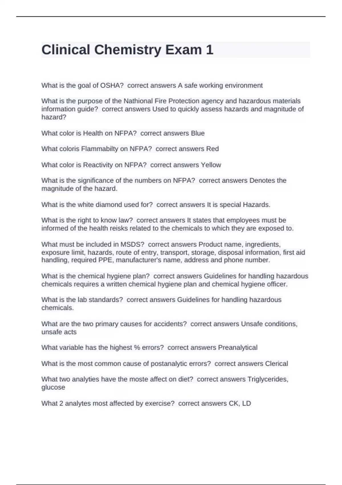 What 2 analytes most affected by exercise? correct answers CK, LD