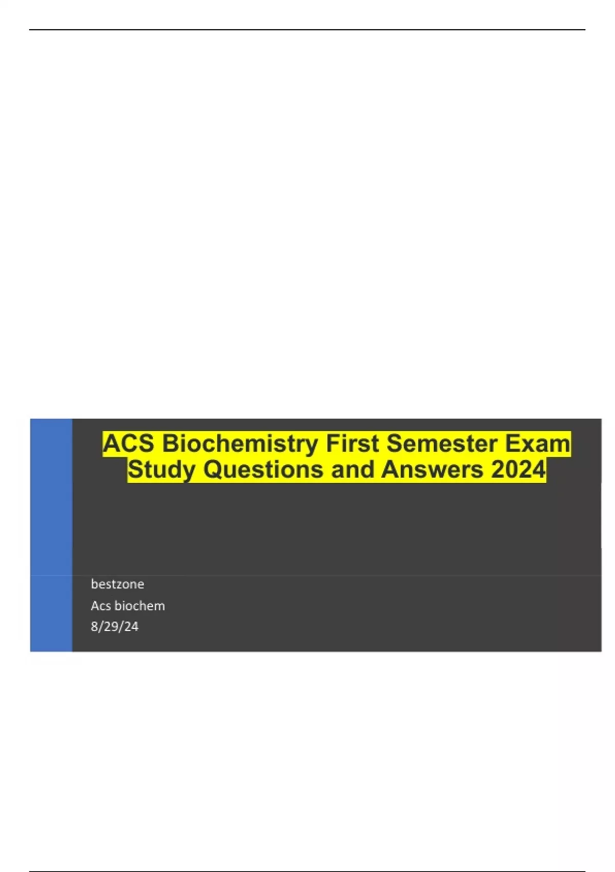 ACS Biochemistry First Semester Exam Study Questions and Answers 2024