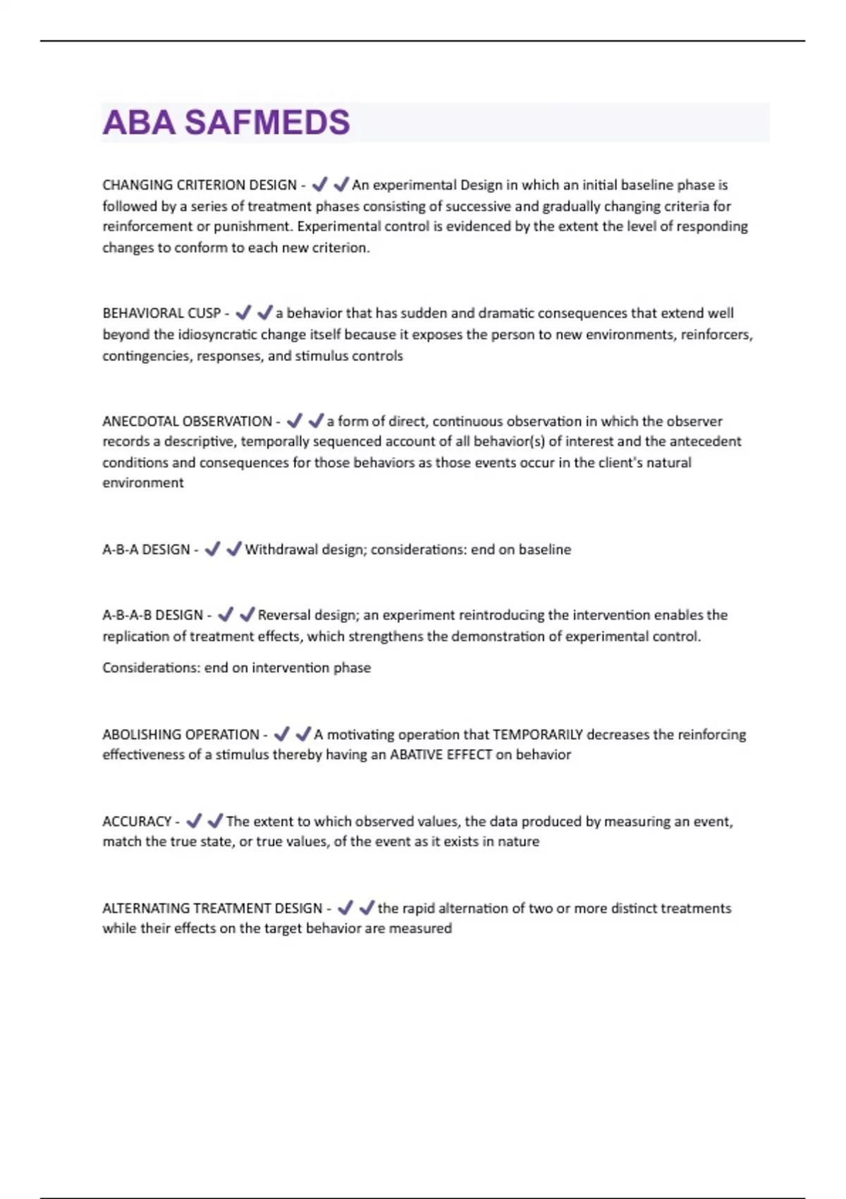 A-B-A DESIGN - Withdrawal design; considerations: end on baseline