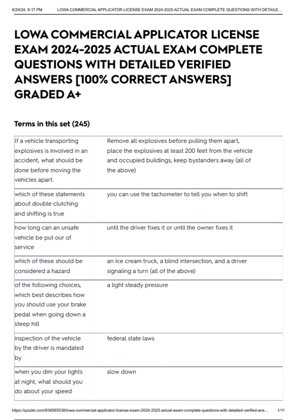 8/29/24, 8:17 PM LOWA COMMERCIAL APPLICATOR LICENSE EXAM 2024-2025 ACTUAL EXAM COMPLETE QUESTIONS WITH DETAILE…