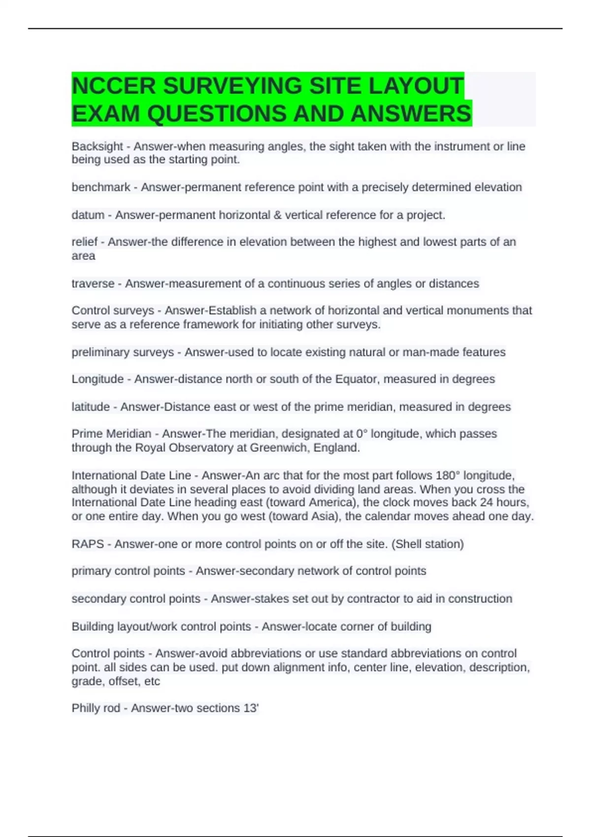 Backsight - Answer-when measuring angles, the sight taken with the instrument or line