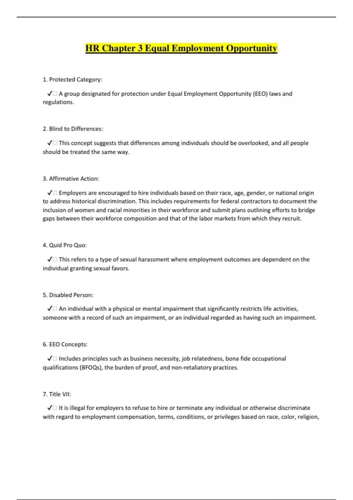 ✔️ Includes principles such as business necessity, job relatedness, bona fide occupational