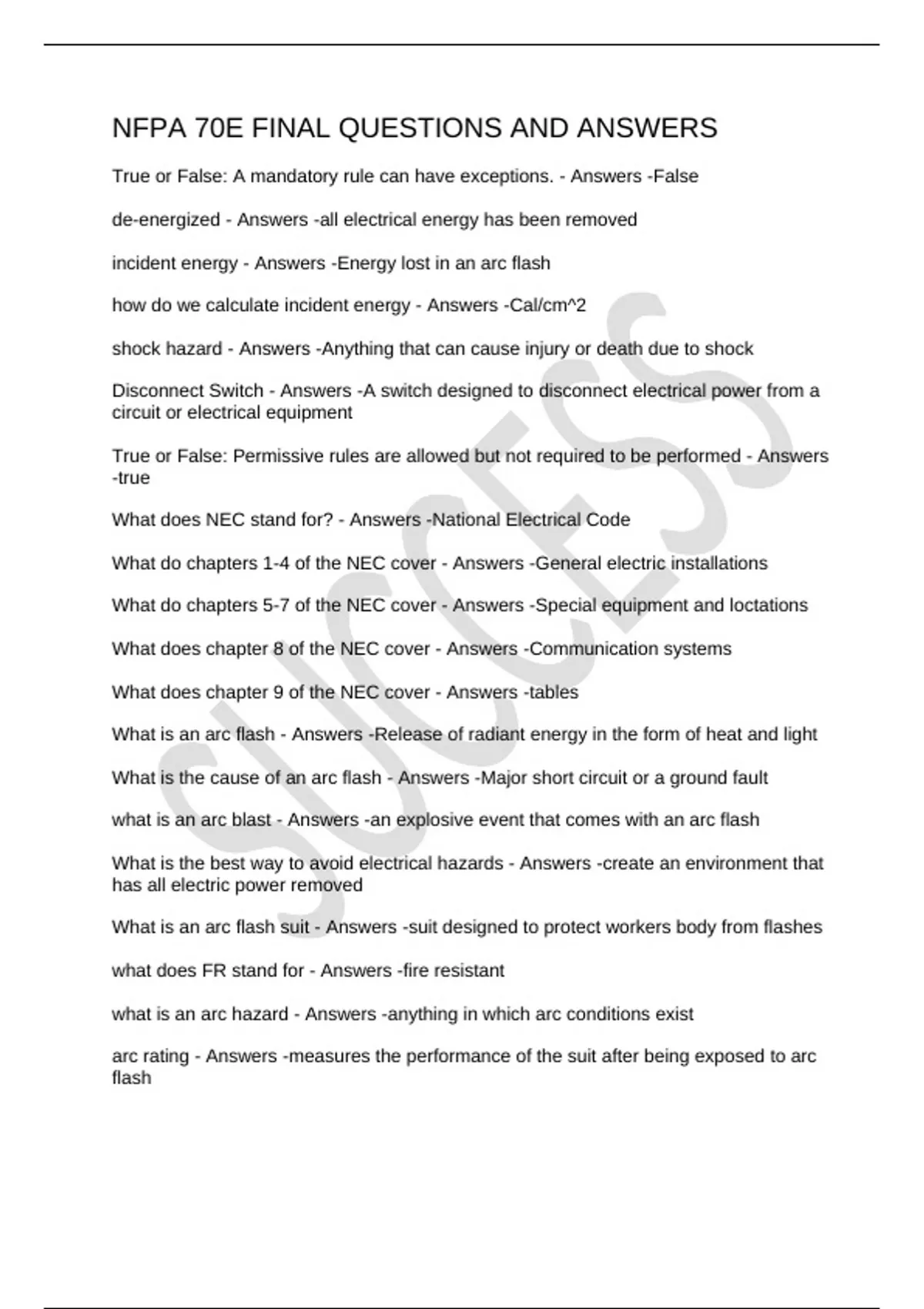 NFPA 70E FINAL QUESTIONS AND ANSWERS