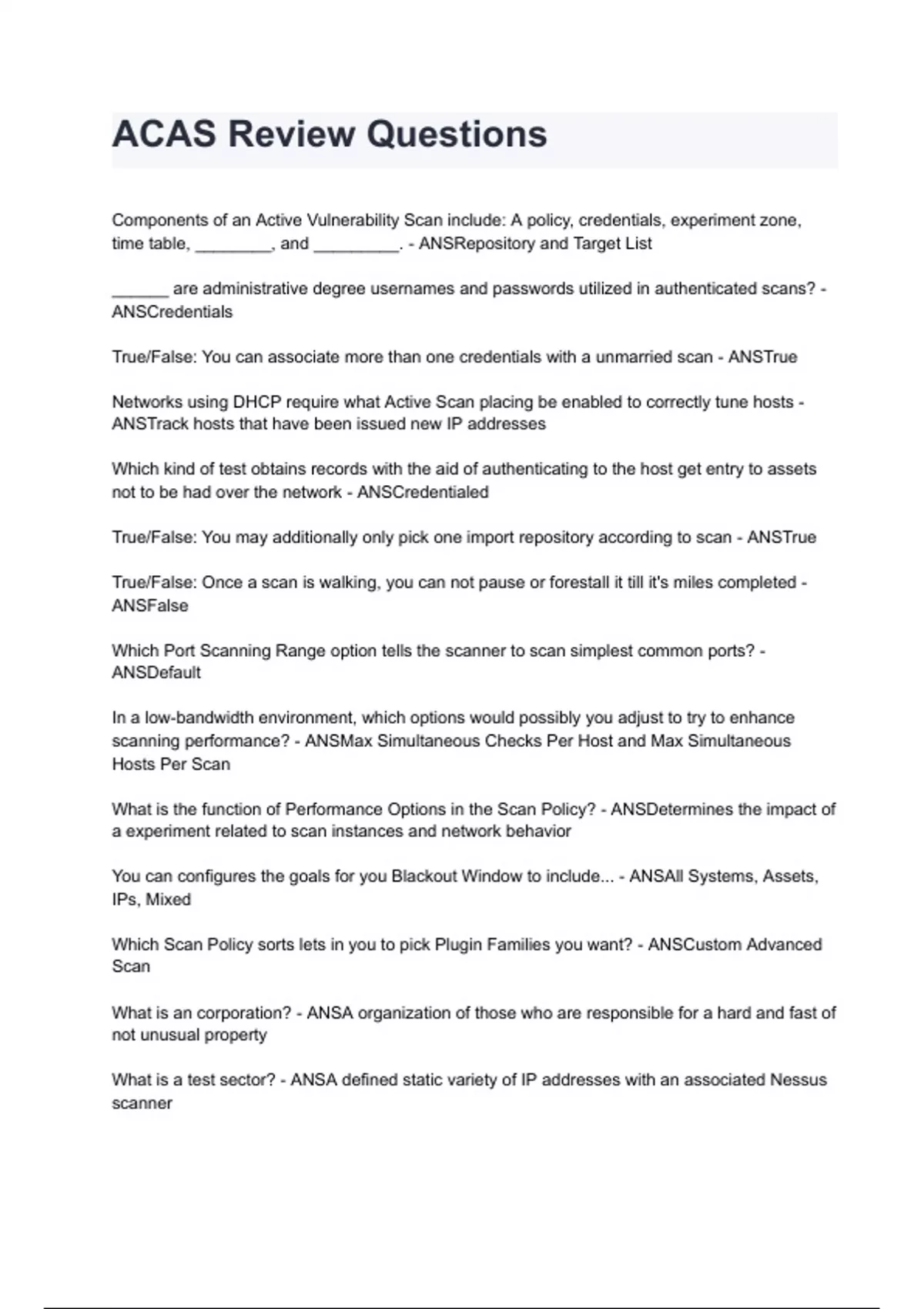 True/False: You can associate more than one credentials with a unmarried scan - ANSTrue