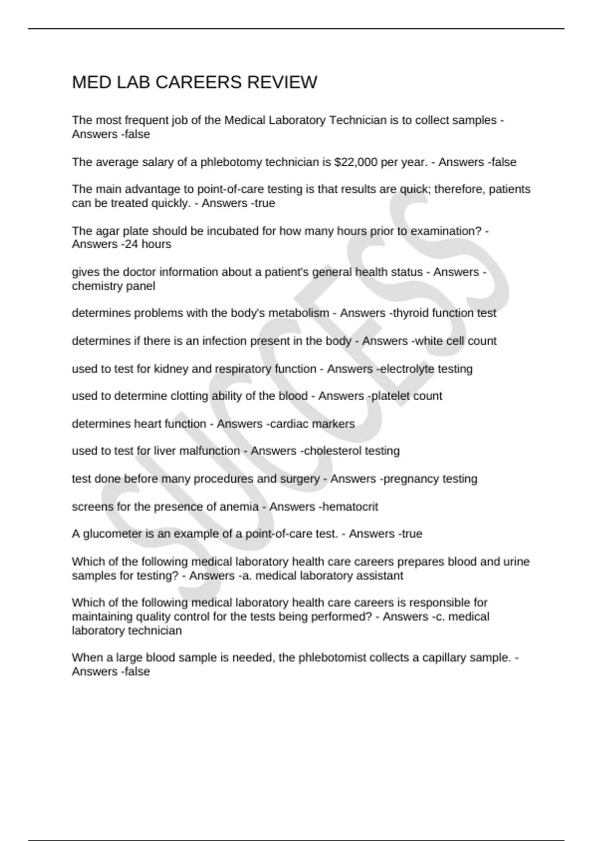 MED LAB CAREERS REVIEW