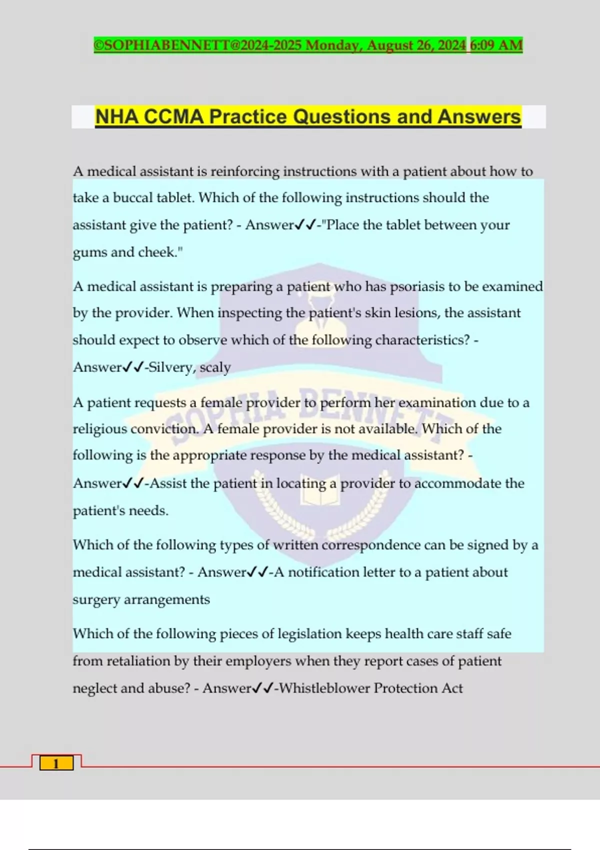 Which of the following actions should the assistant take? - Answer✔️✔️-The