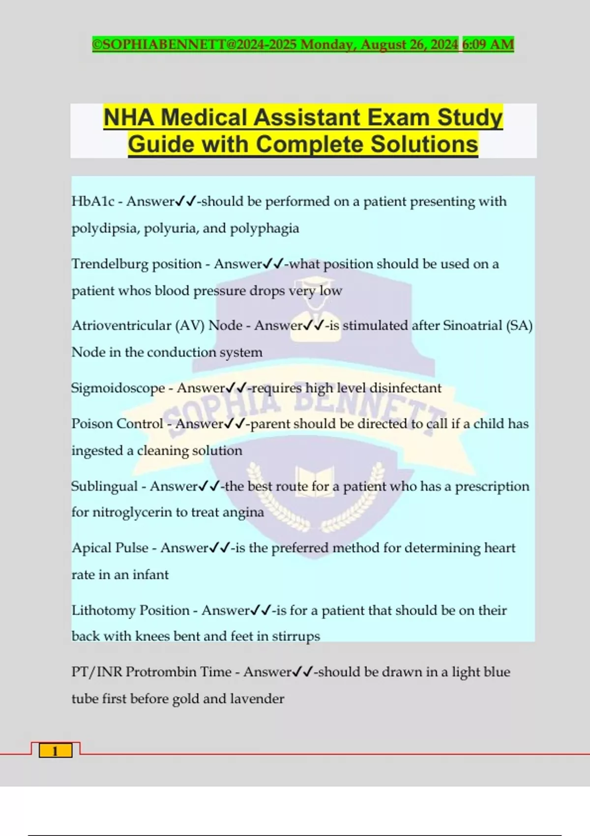NHA Medical Assistant Exam Study