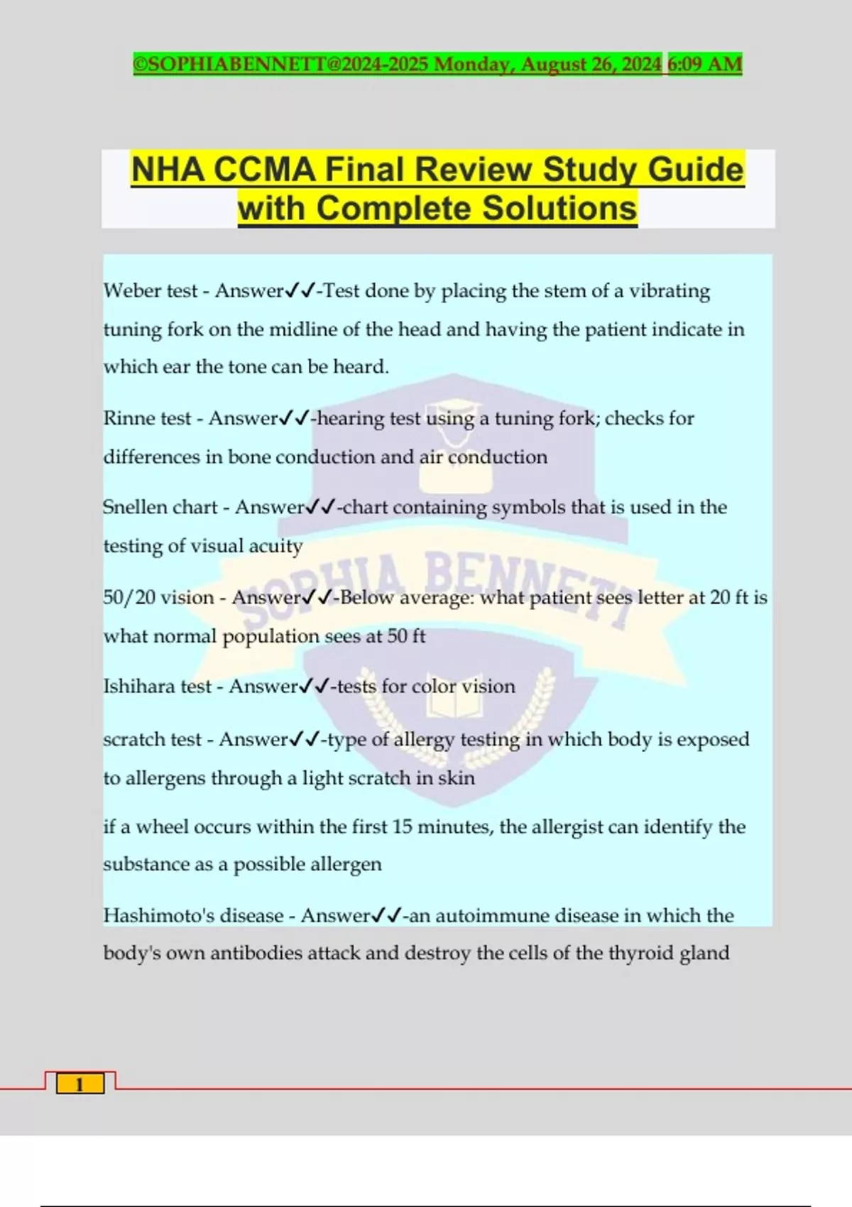 NHA CCMA Final Review Study Guide