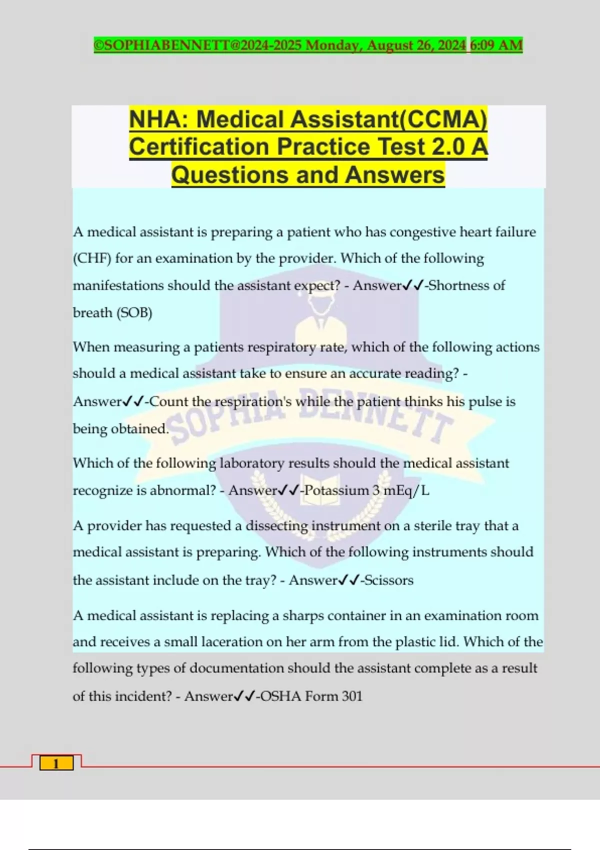 manifestations should the assistant expect? - Answer✔️✔️-Shortness of