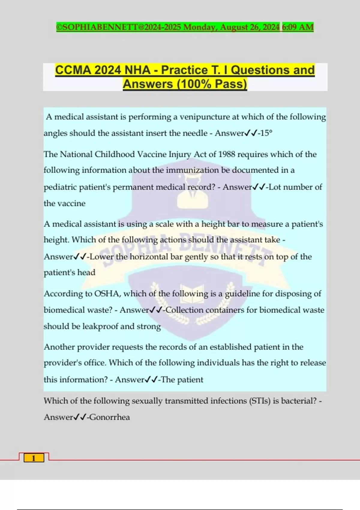 CCMA 2024 NHA - Practice T. I Questions and