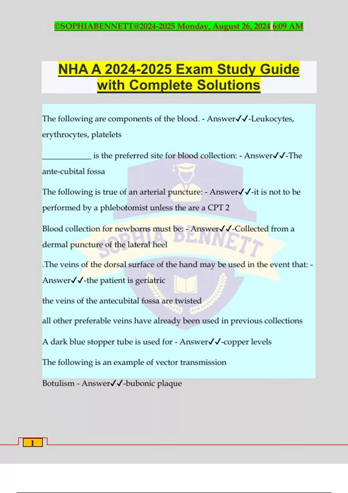 ____________ is the preferred site for blood collection: - Answer✔️✔️-The