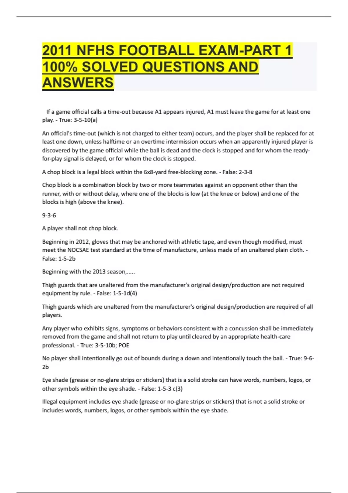 2011 NFHS Football Exam-Part 1