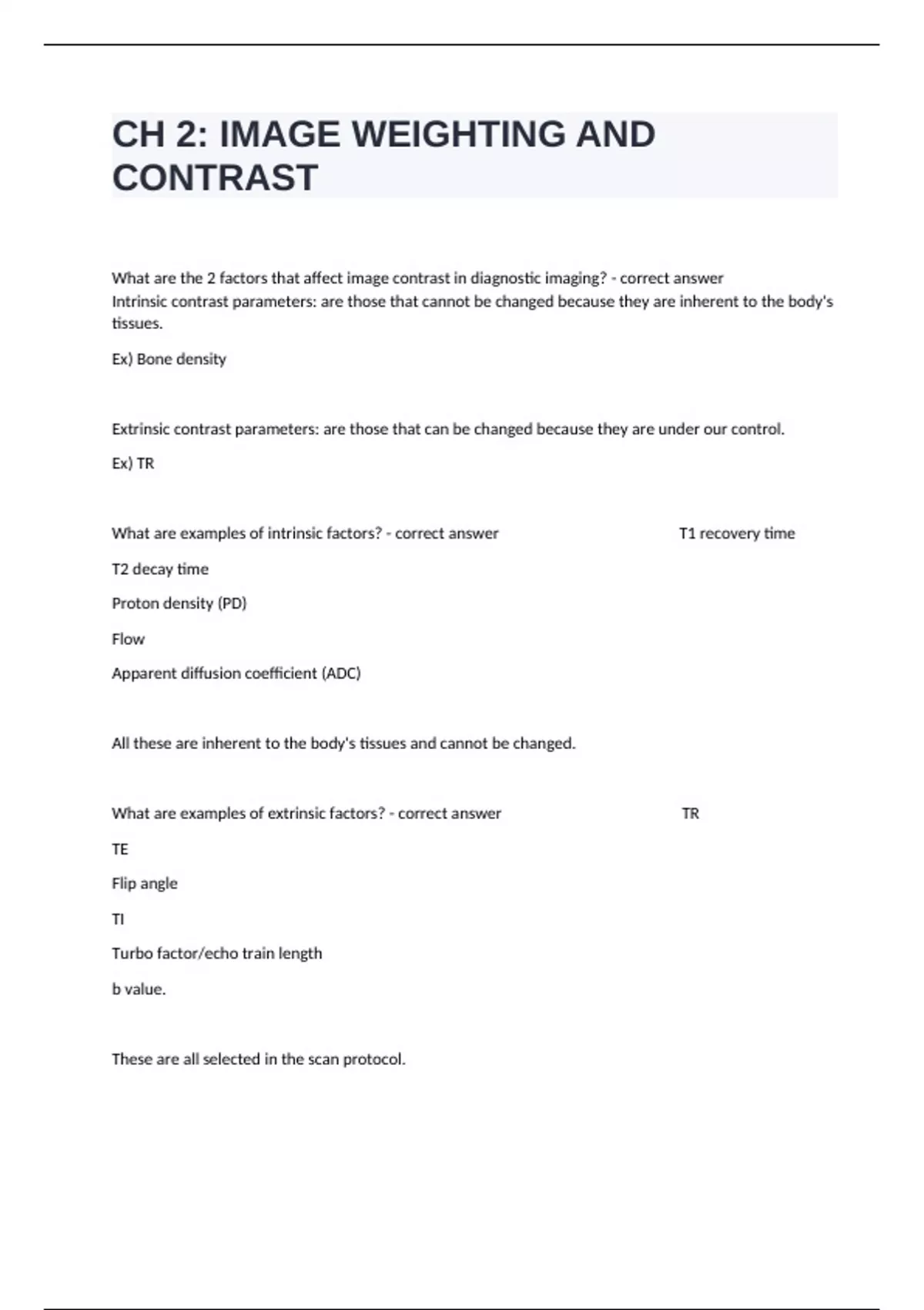 What are examples of intrinsic factors? - correct answer T1 recovery time