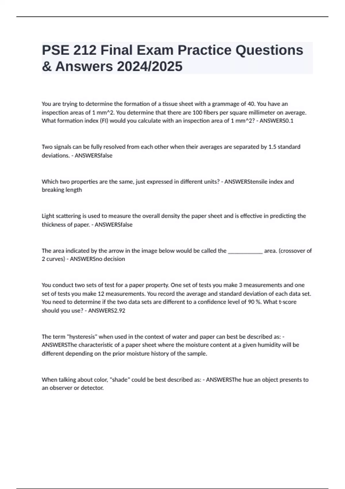 ANSWERSThe characteristic of a paper sheet where the moisture content at a given humidity will be