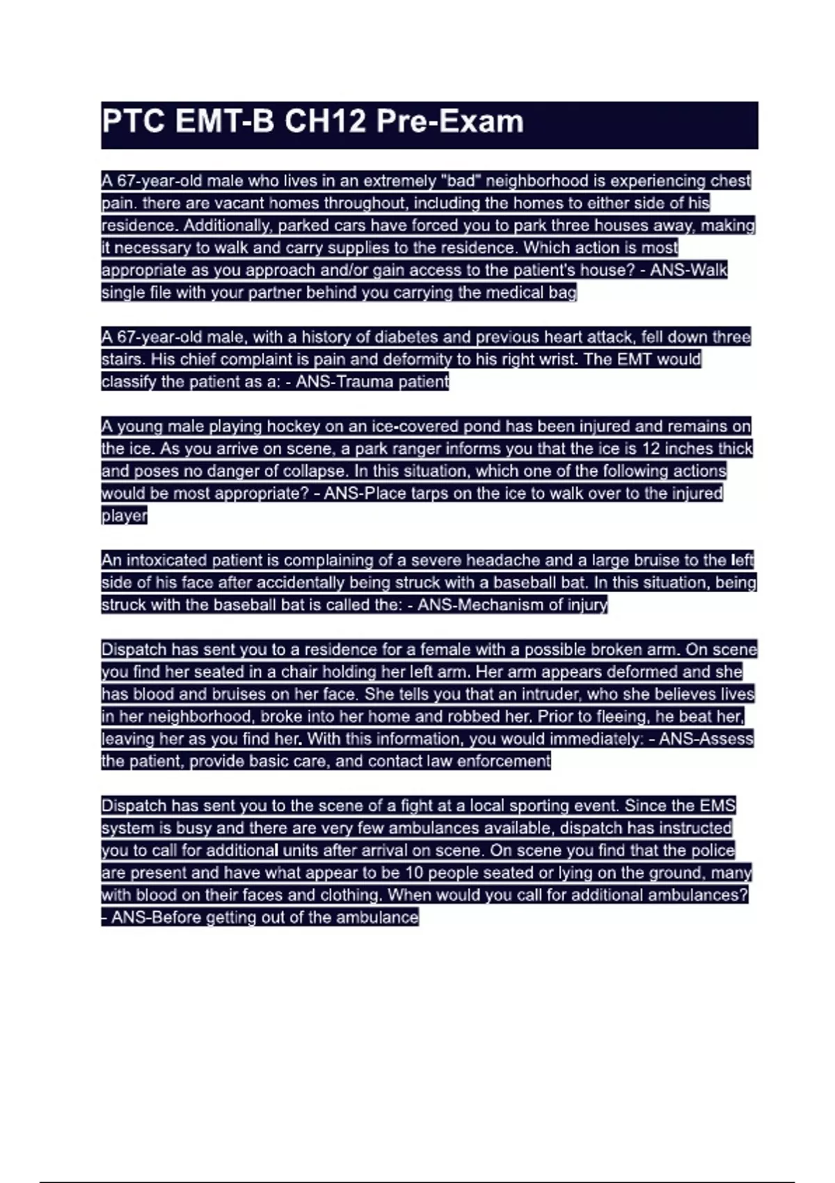 PTC EMT-B CH12 Pre-Exam.