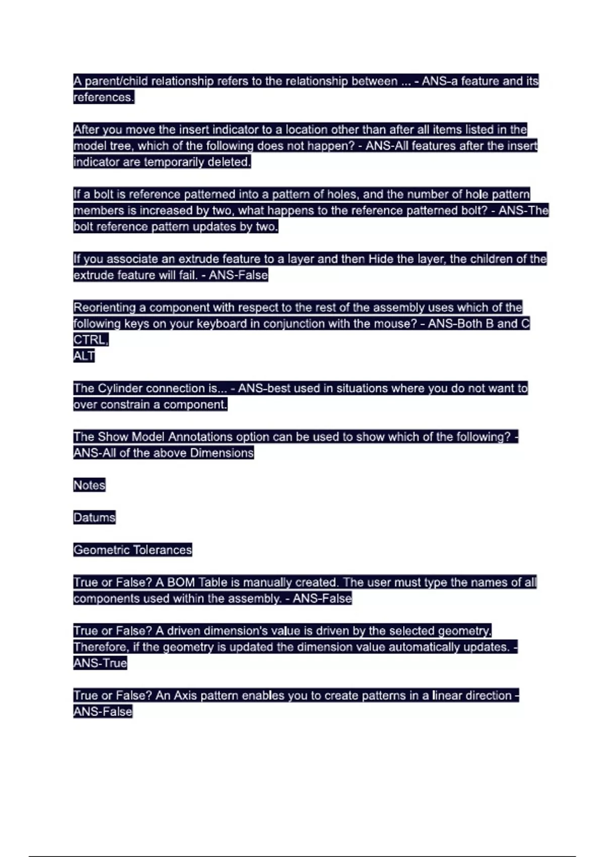 ptc creo test2. Questions & 100% Verified Correct Answers with complete solutions (Latest update