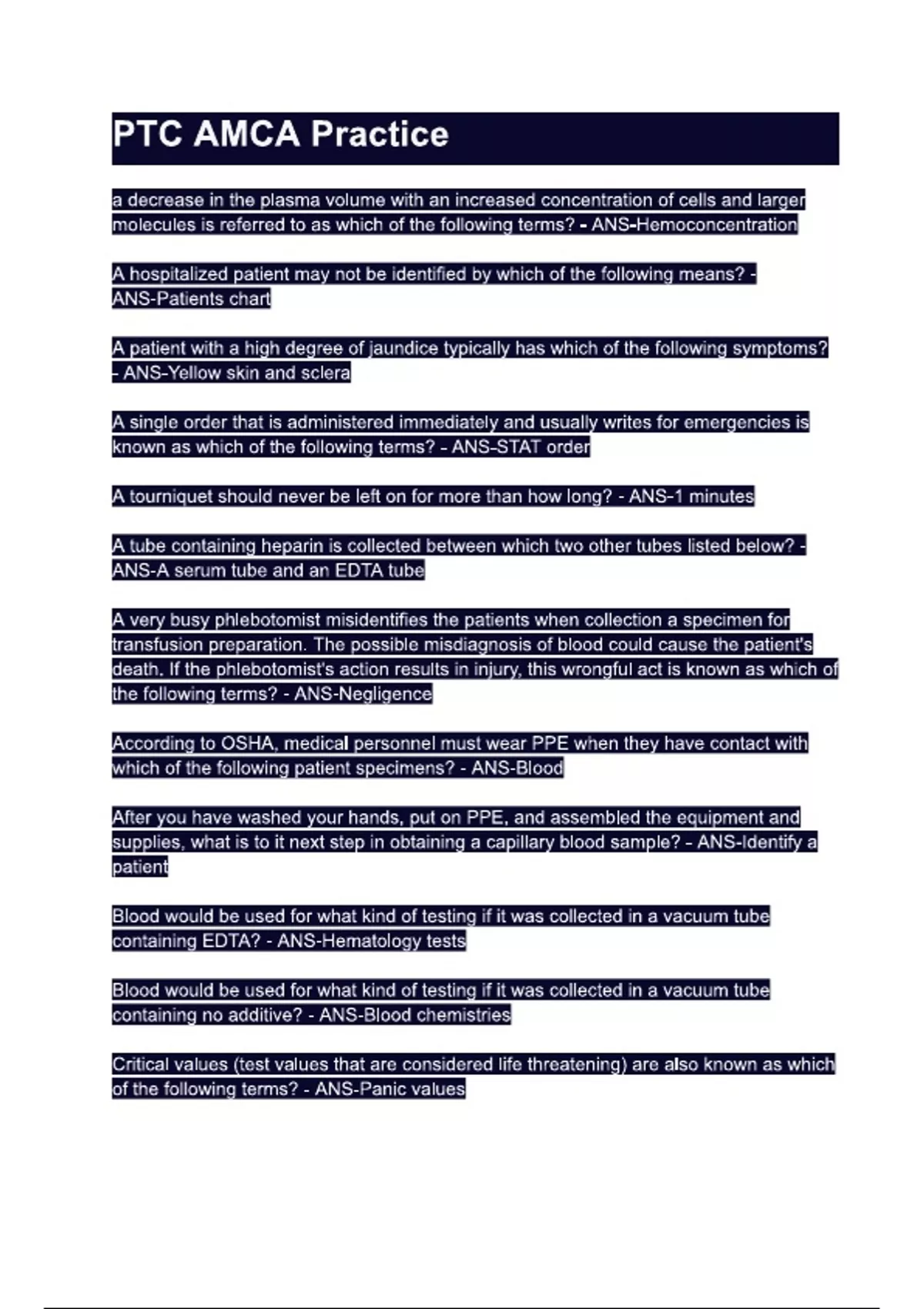 PTC AMCA Practice. Questions & 100% Verified Correct Answers with complete solutions (Latest update
