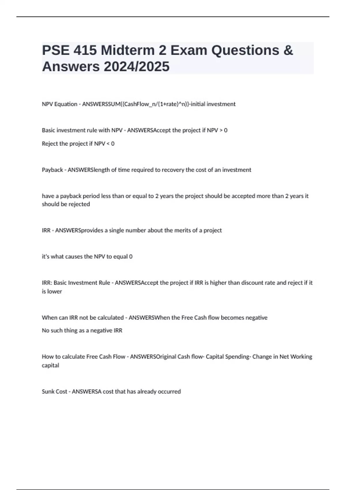 Basic investment rule with NPV - ANSWERSAccept the project if NPV > 0