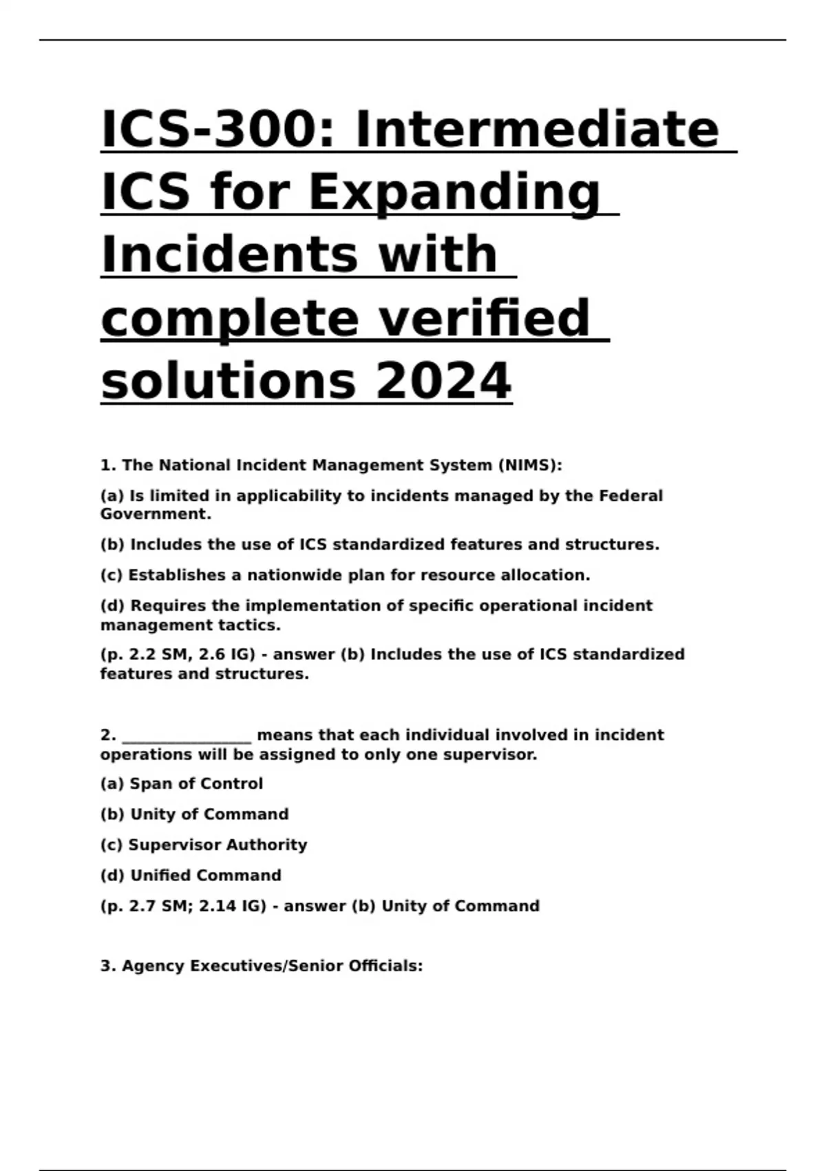 NIMS ICS-300: Final Exam fully solved 2024 (100% accuracy)